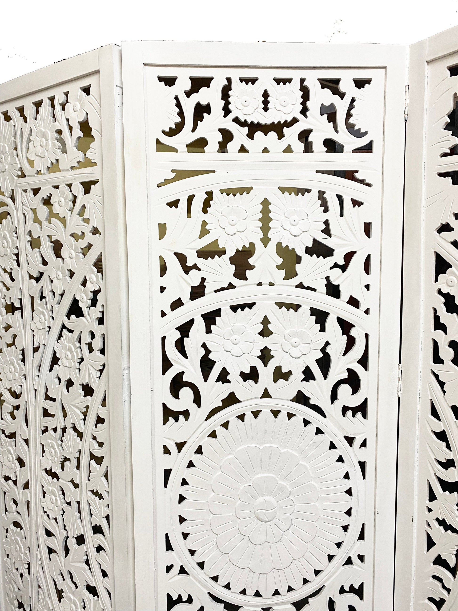 3 Panel Flower Design Partition, Handmade Wooden Folding screen Partition