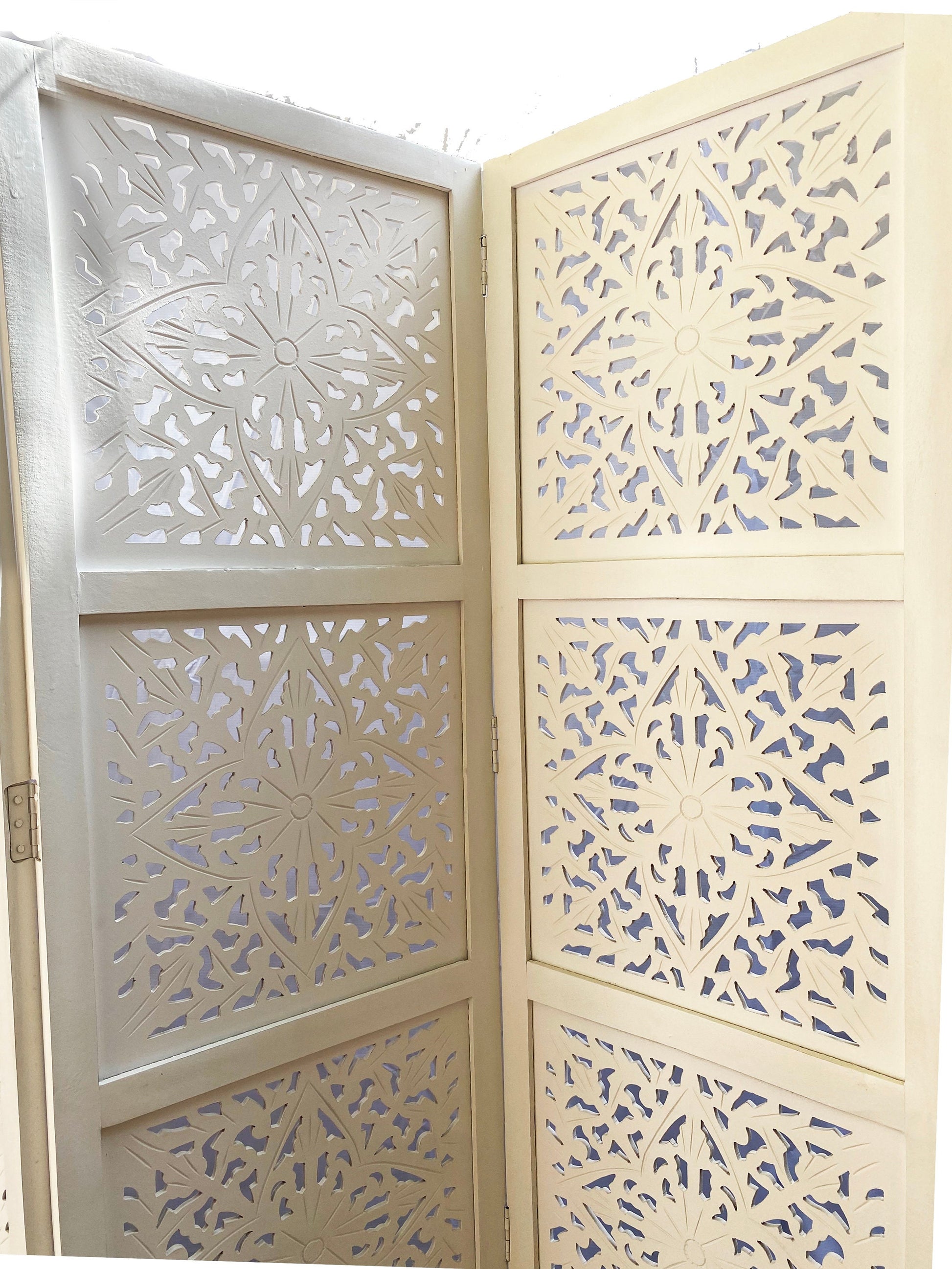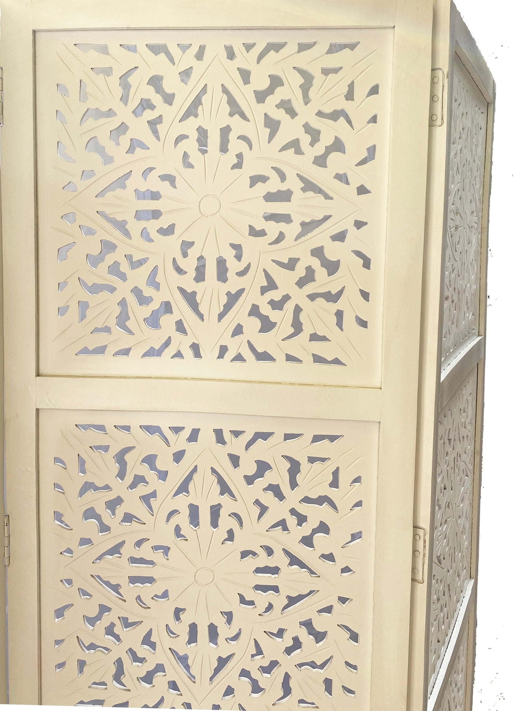 Flower Style Wooden Folding White Divider, Partition, Handmade Self standing separator
