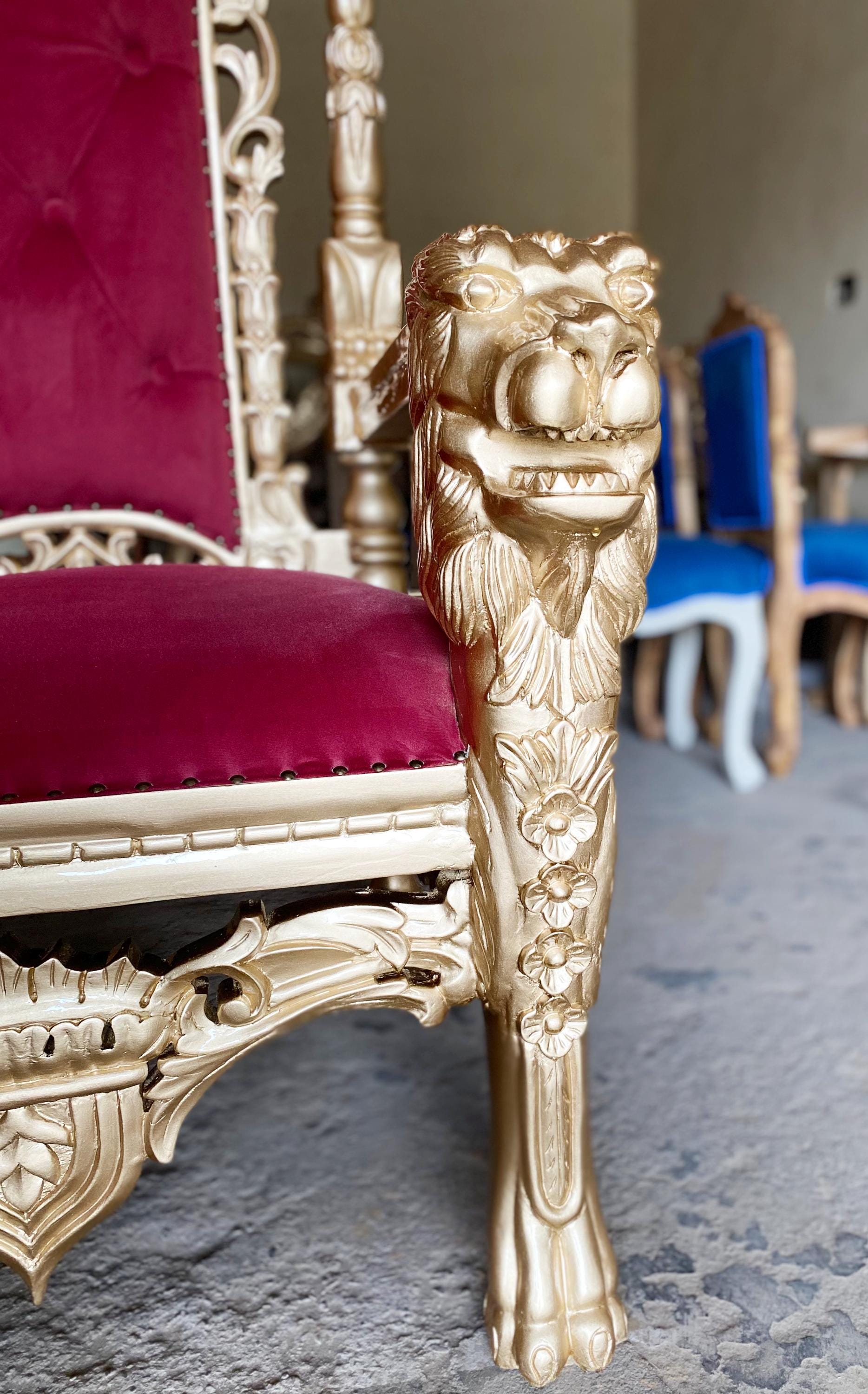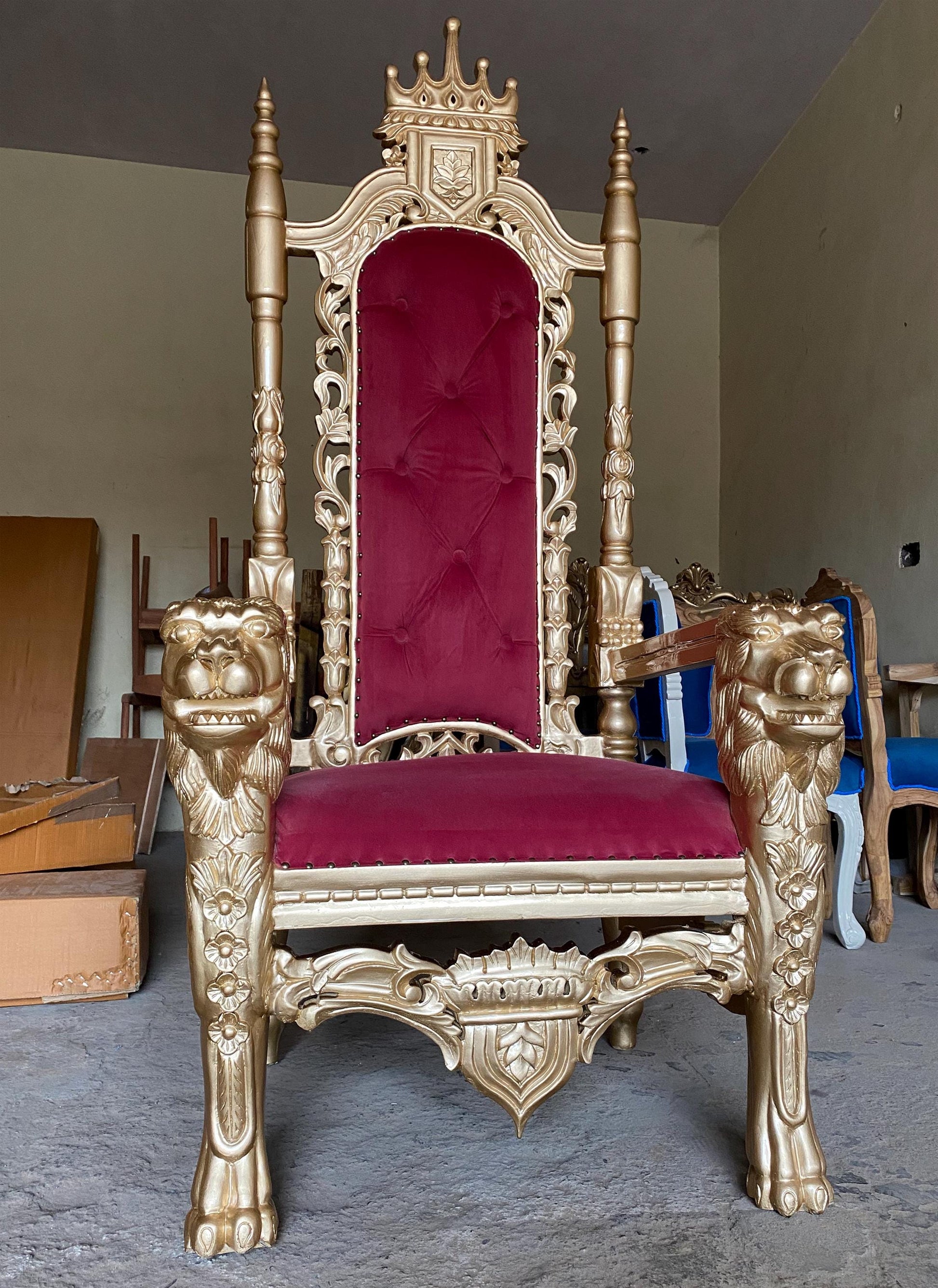 These are hand Carving  beautiful Royal chair With gold lion engraving on each arm rest