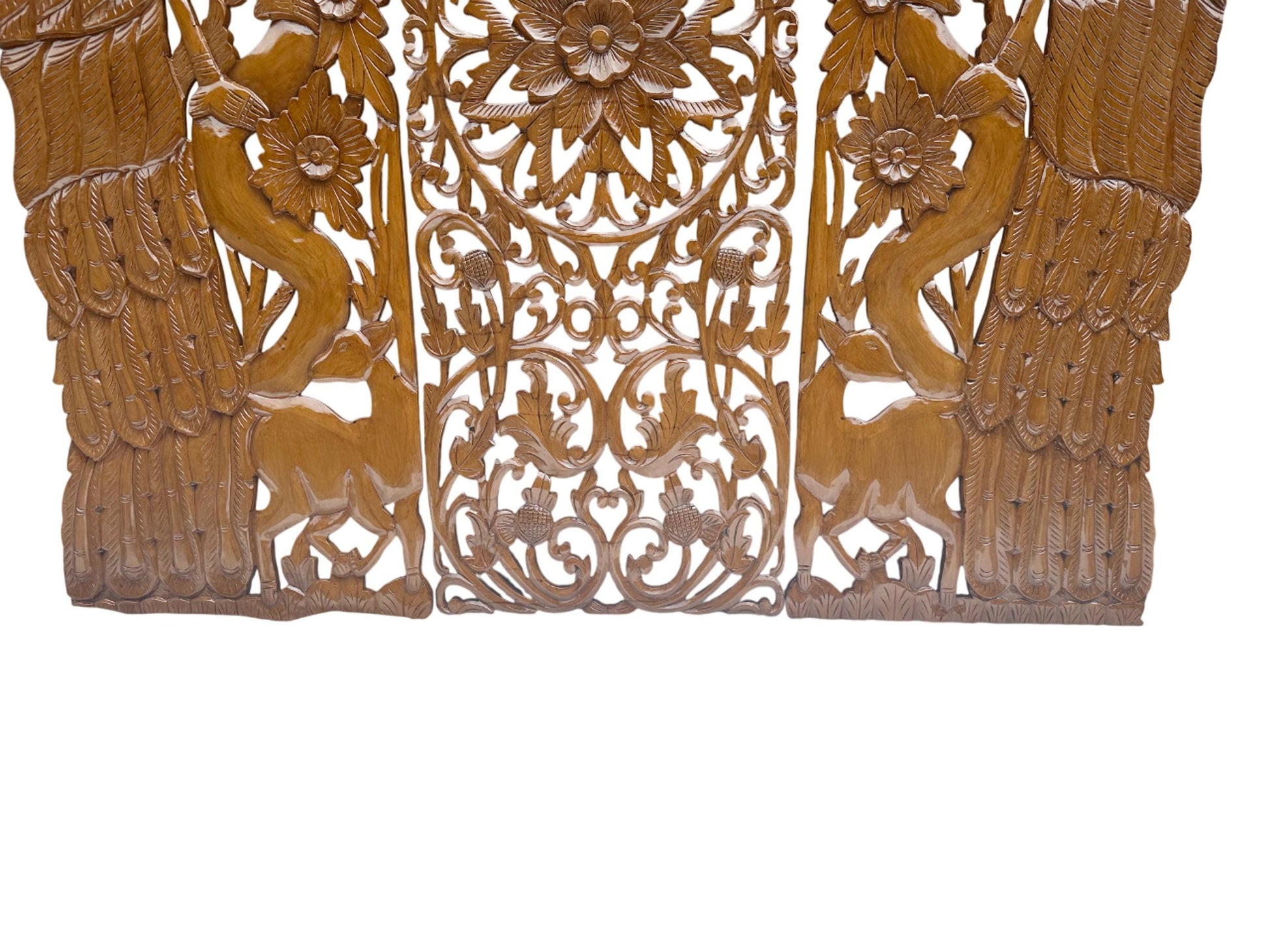 2 panel are carved with the peacock and dear shape and flower
