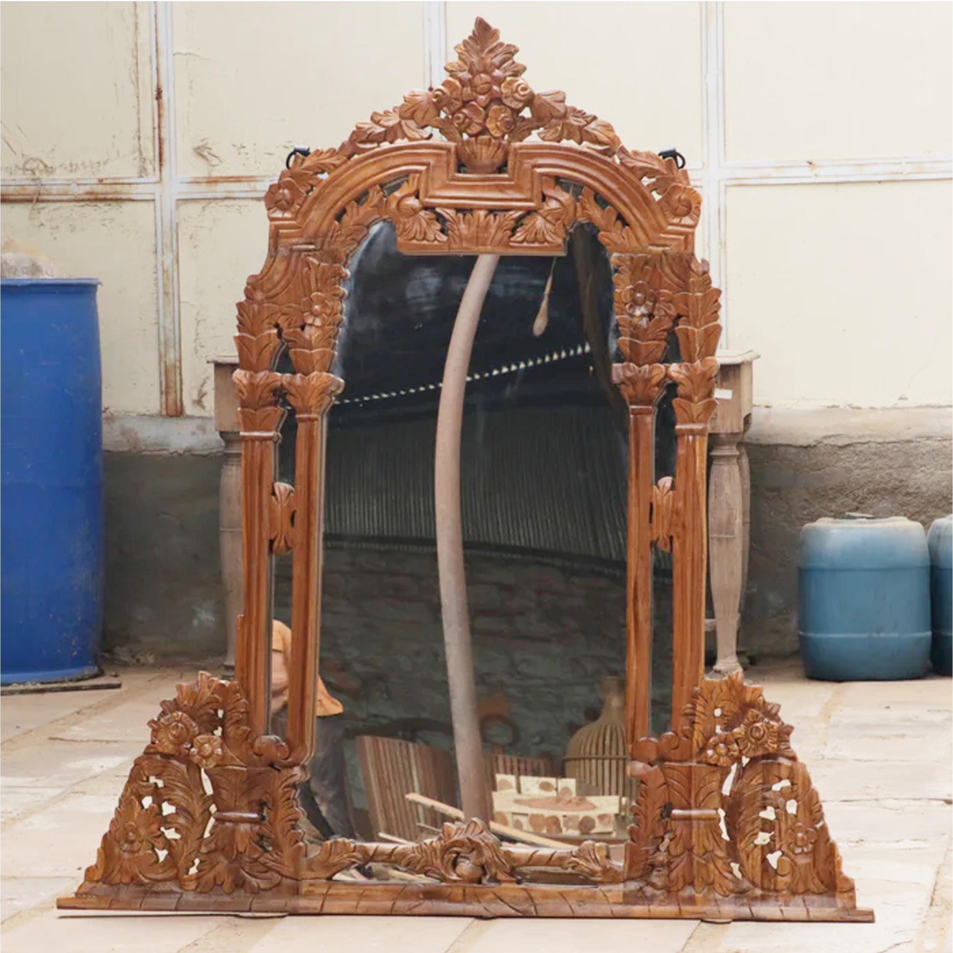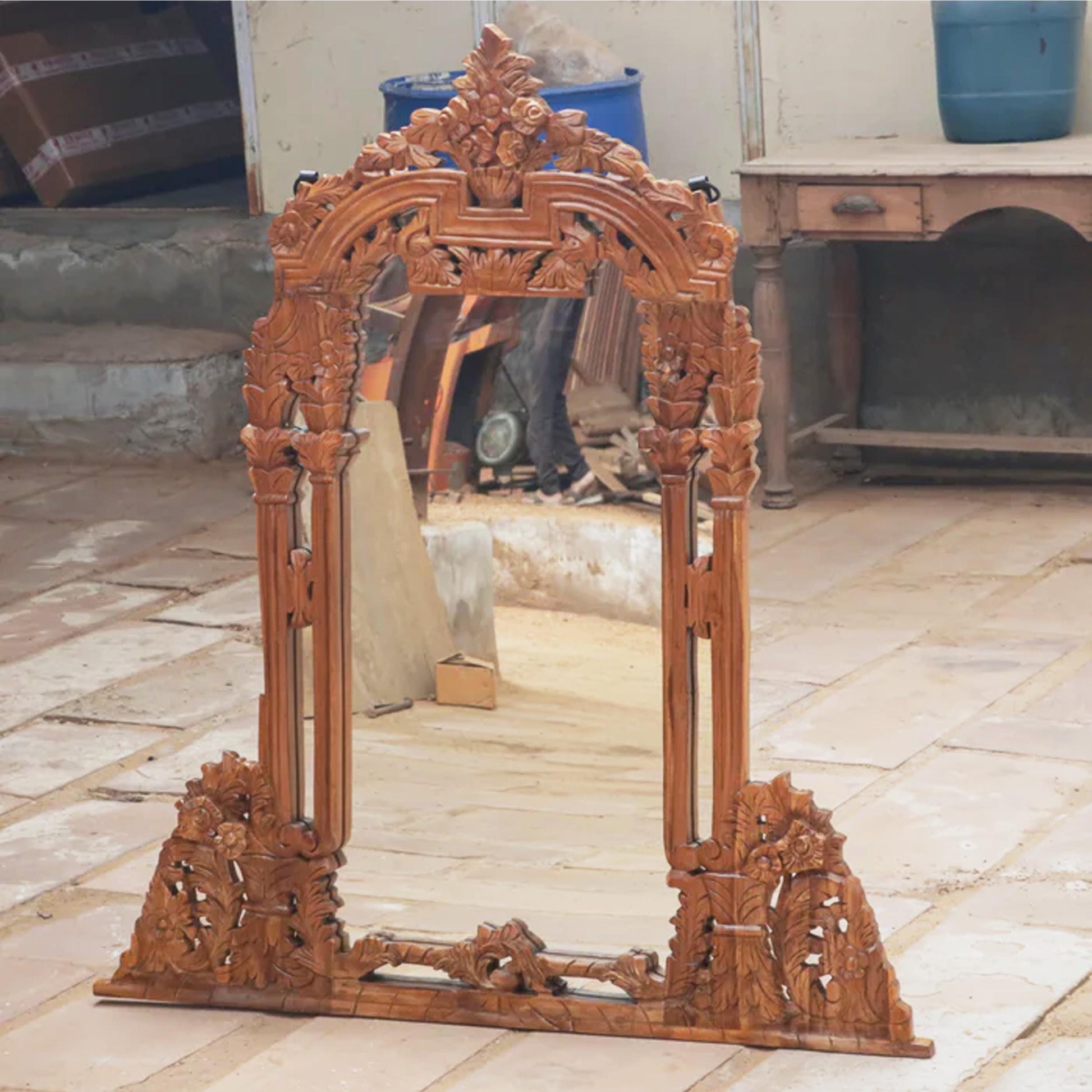 Hand Carved Wood Wall Mirror: Mid-Century Modern Decor (48x37 Inches