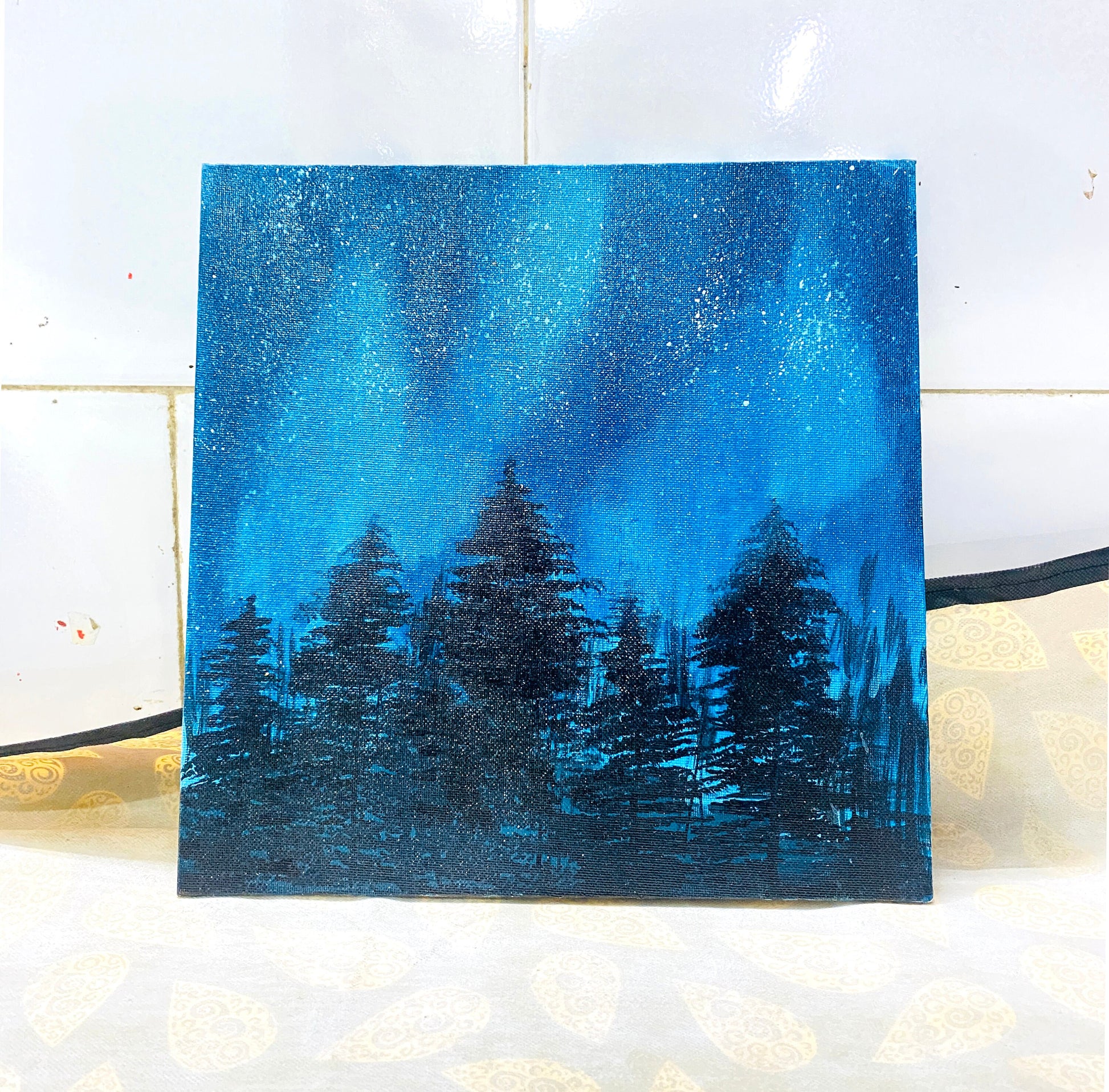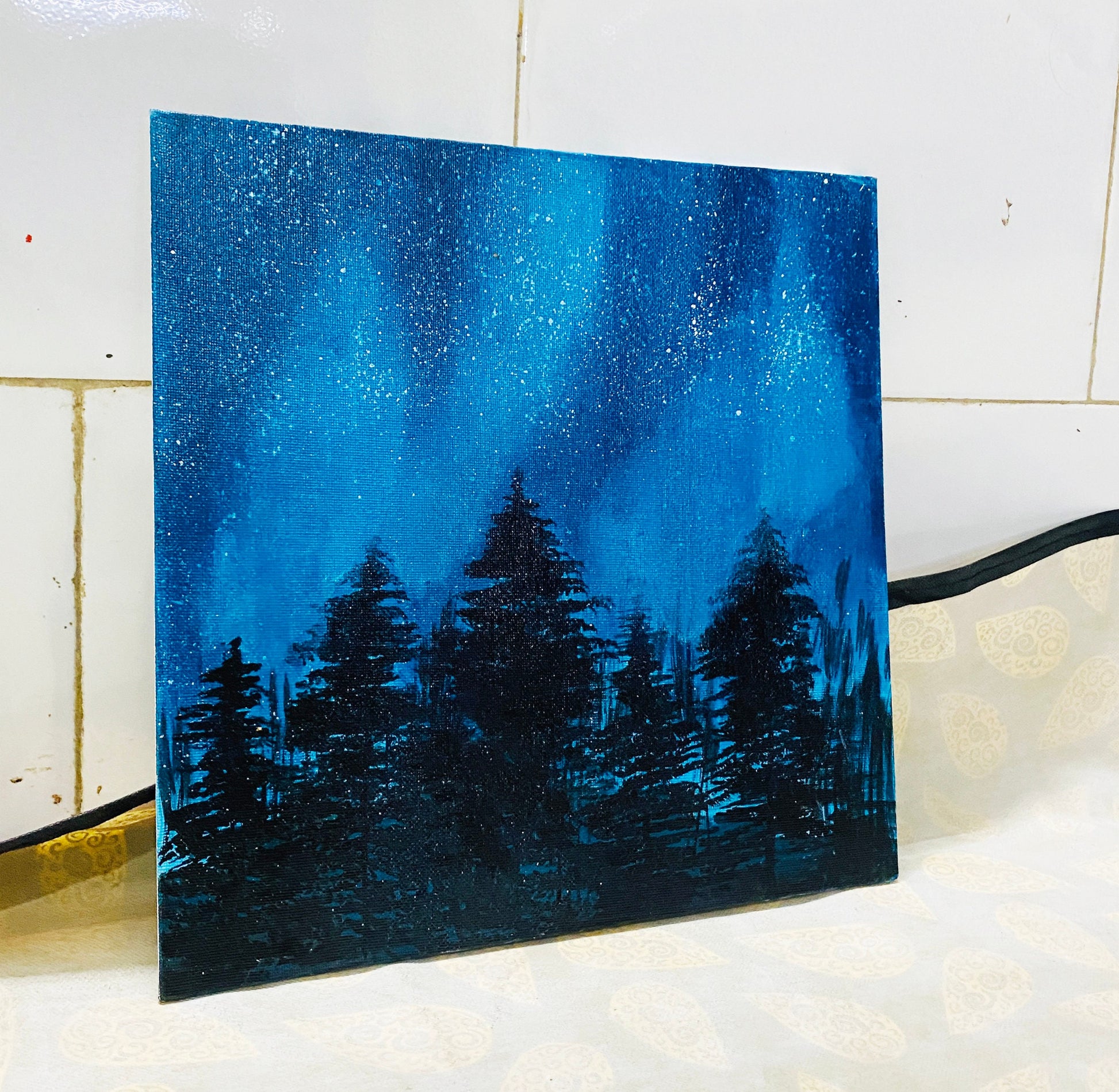 Hand Painted Northern Lights Painting on canvas, Wall décor for home and office