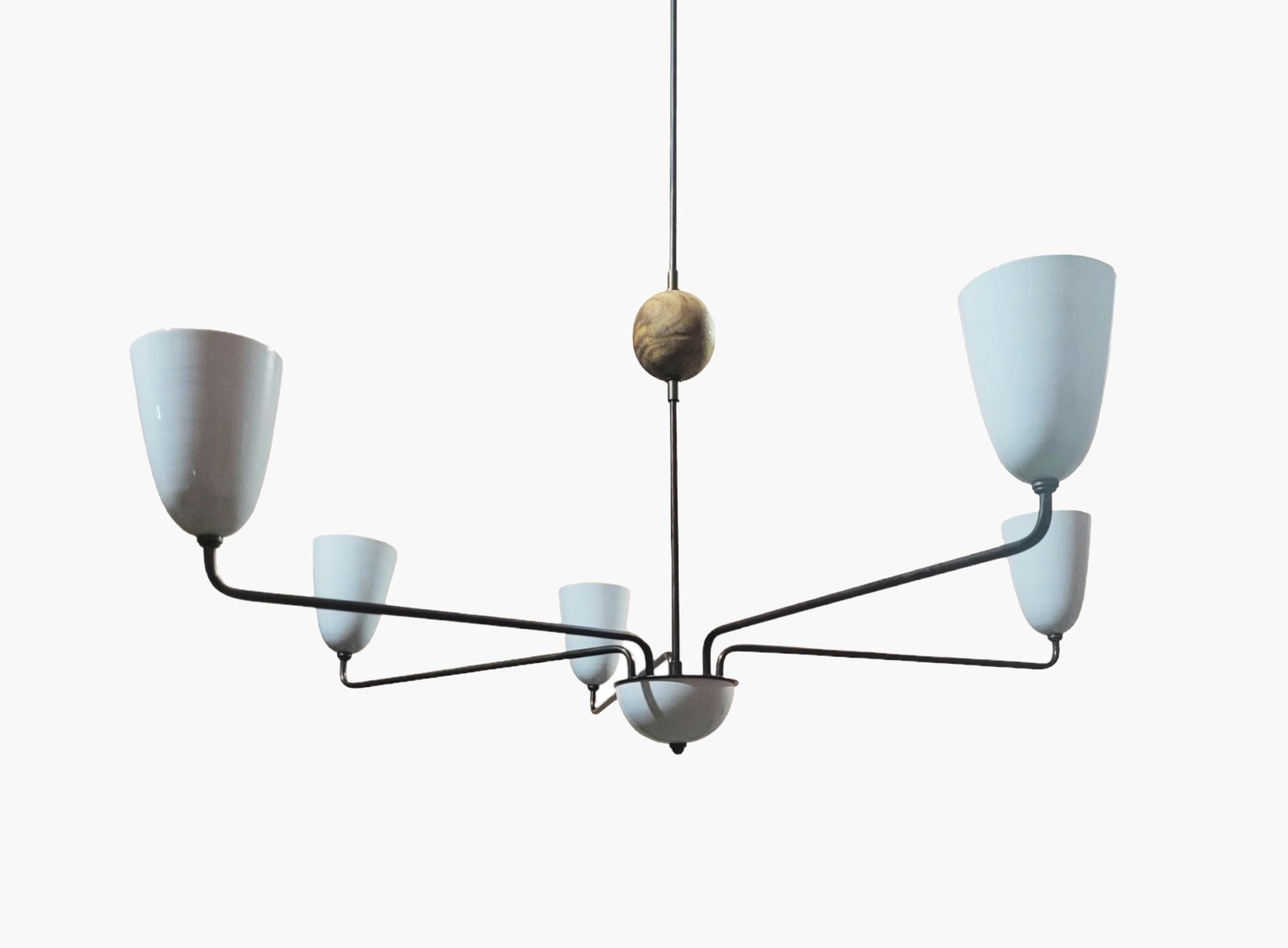 Handmade Brass 5-Arm Chandelier: Mid-Century Modern Ceiling Light