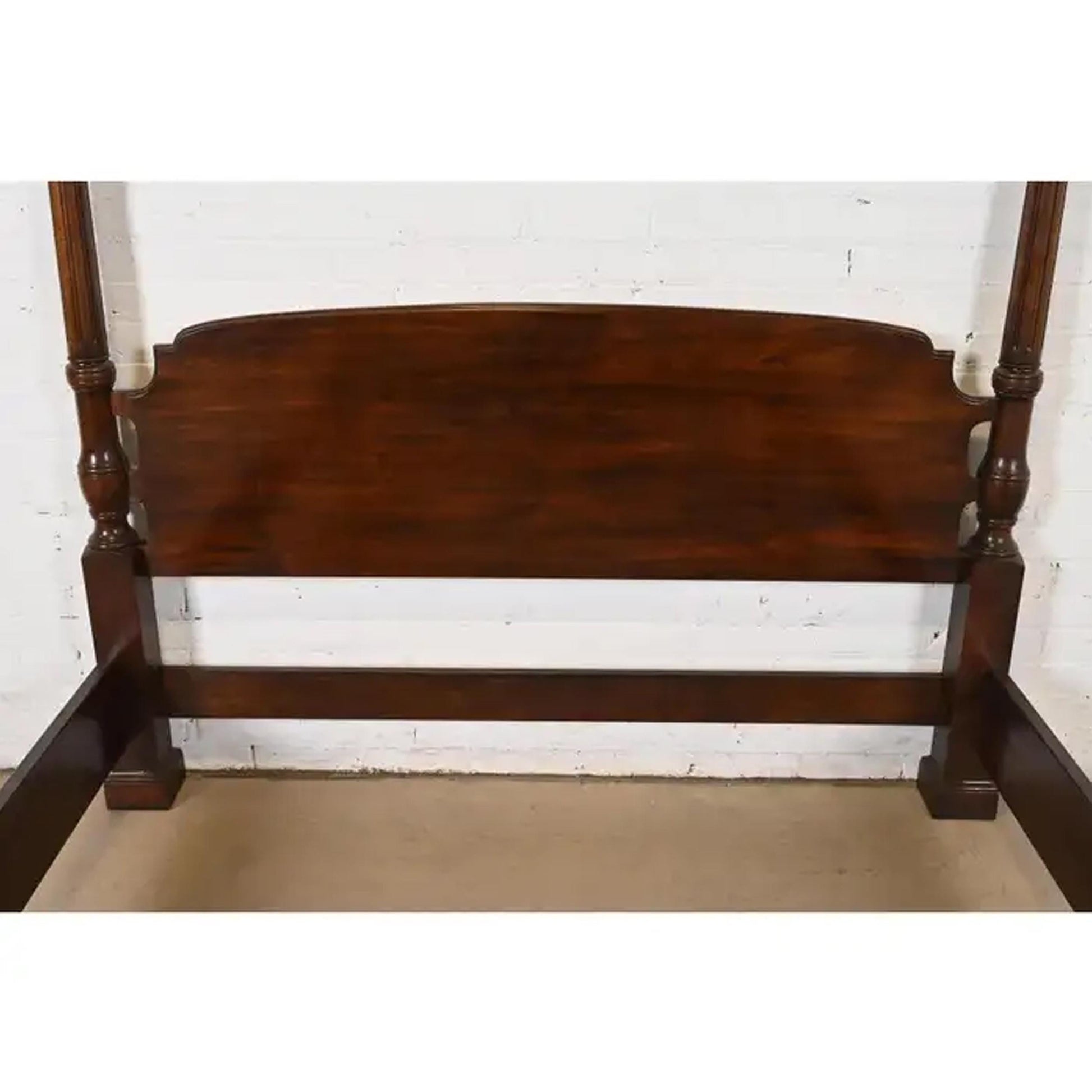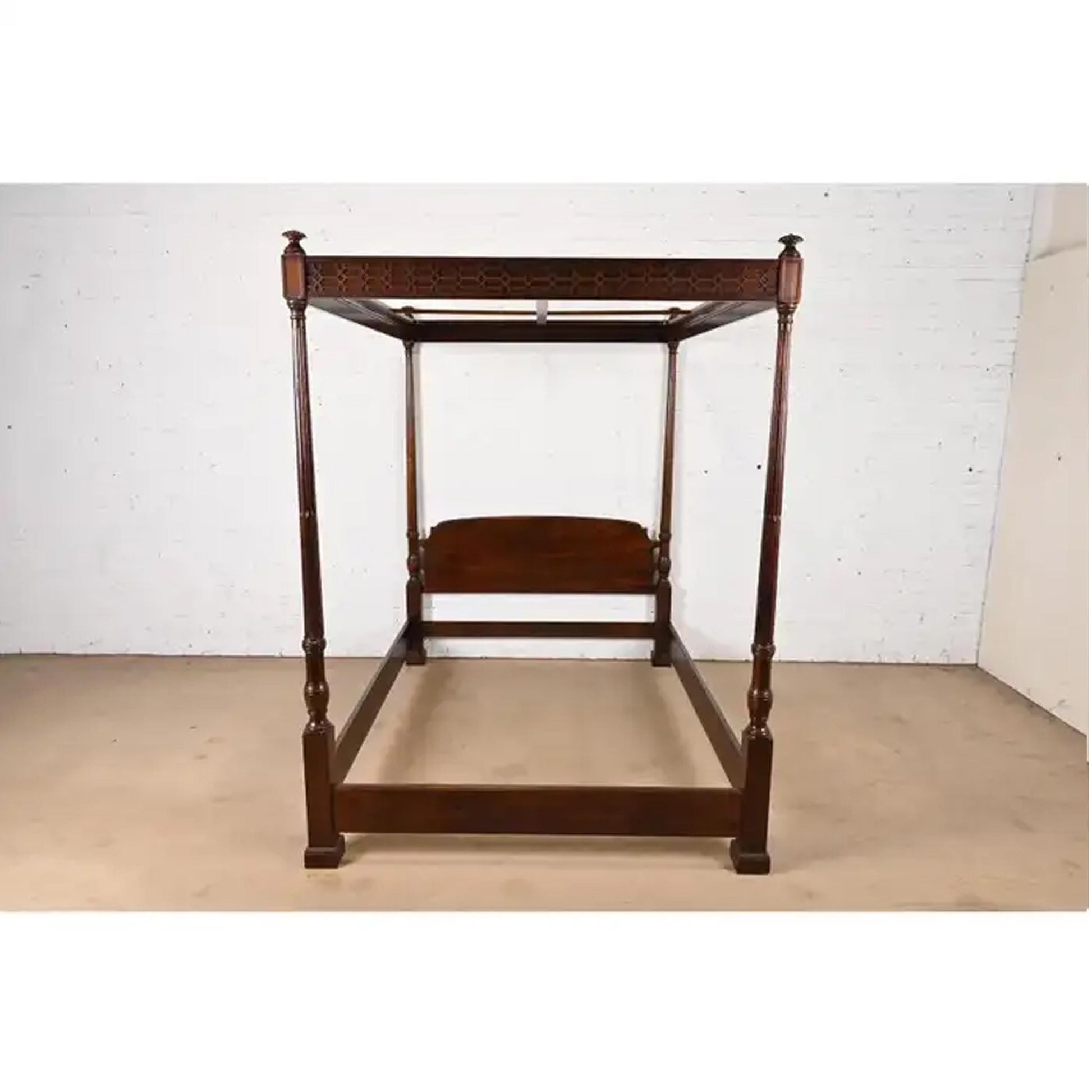 Handmade Carved Mahogany Canopy Bed: Mid-Century Modern King/Queen