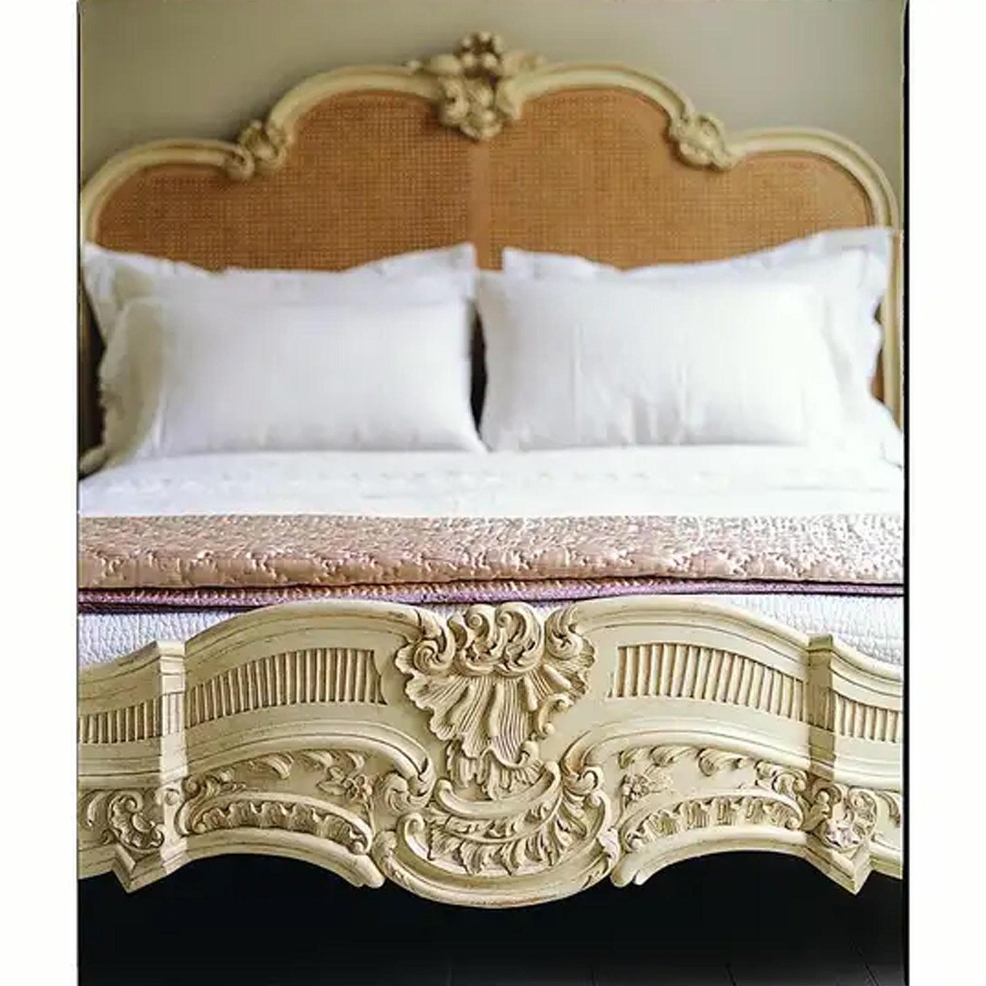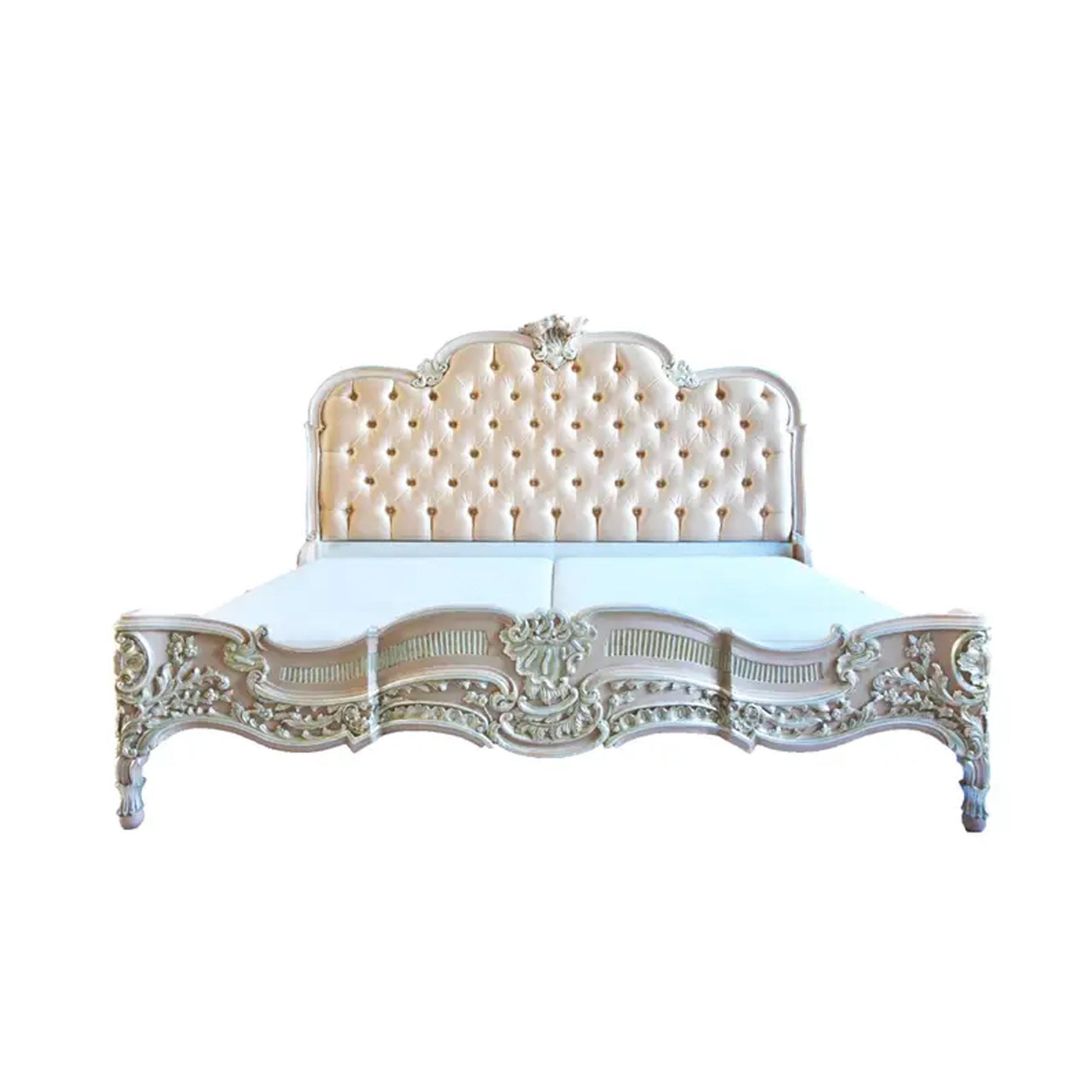 Handmade Giltwood Bed Frame: Louis XV Rococo Style, Tufted Headboard