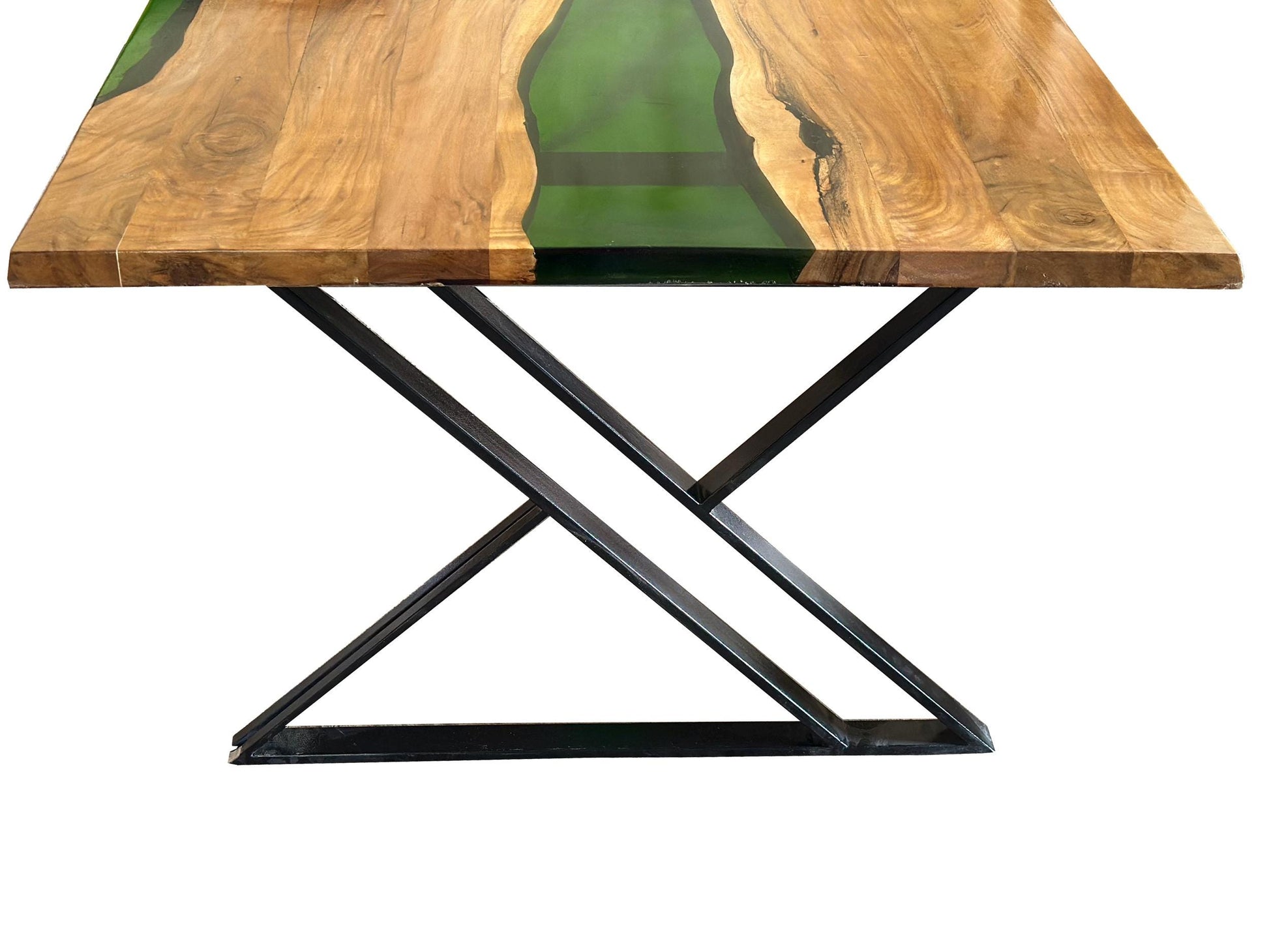 Handmade Live Edge Teak & Epoxy Dining Table with Metal Legs