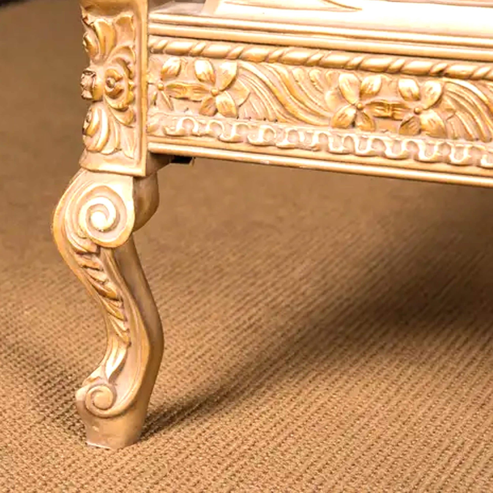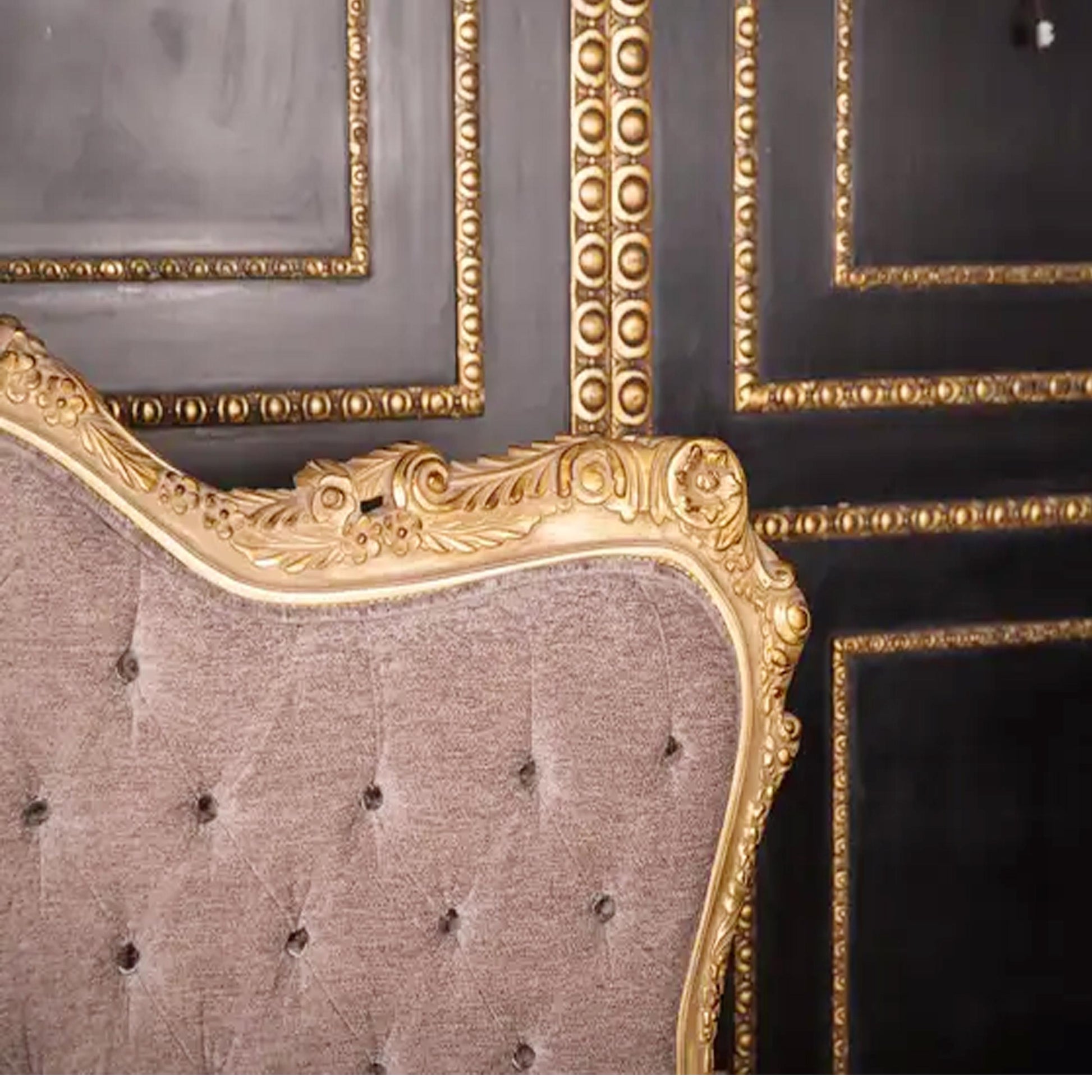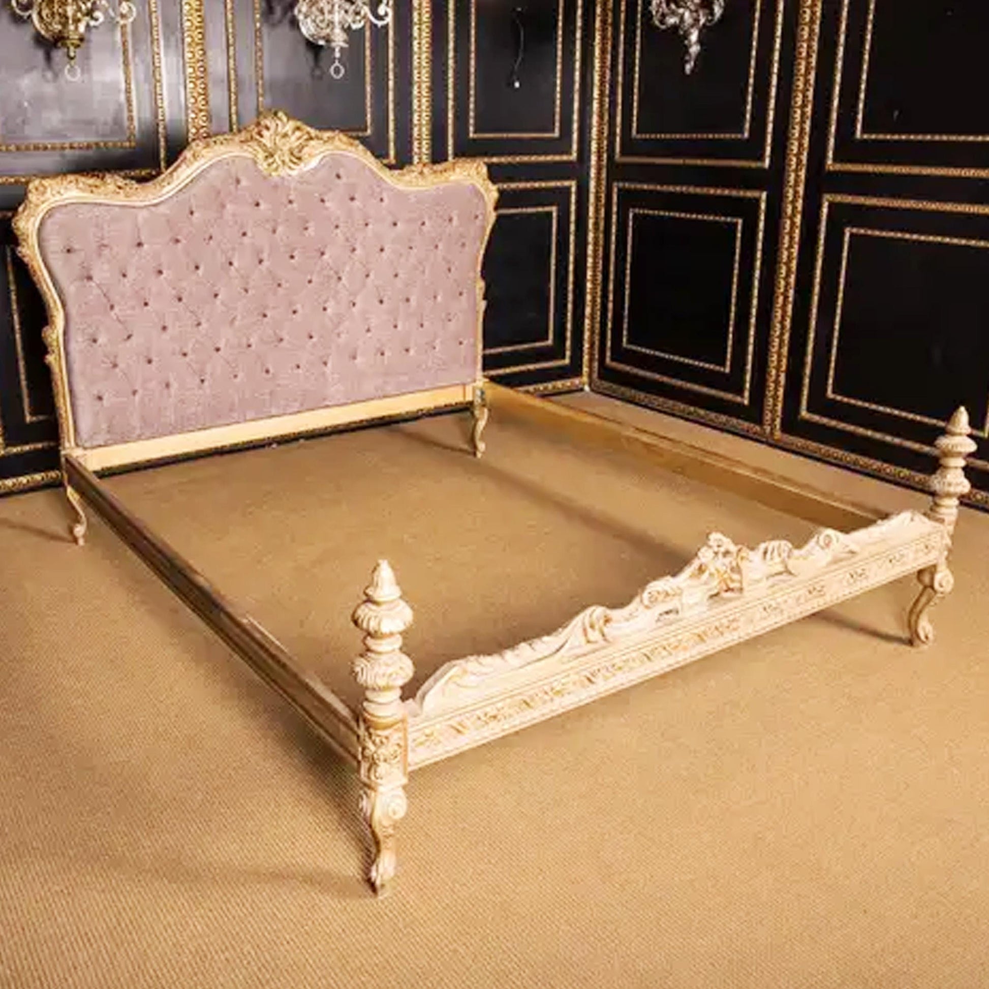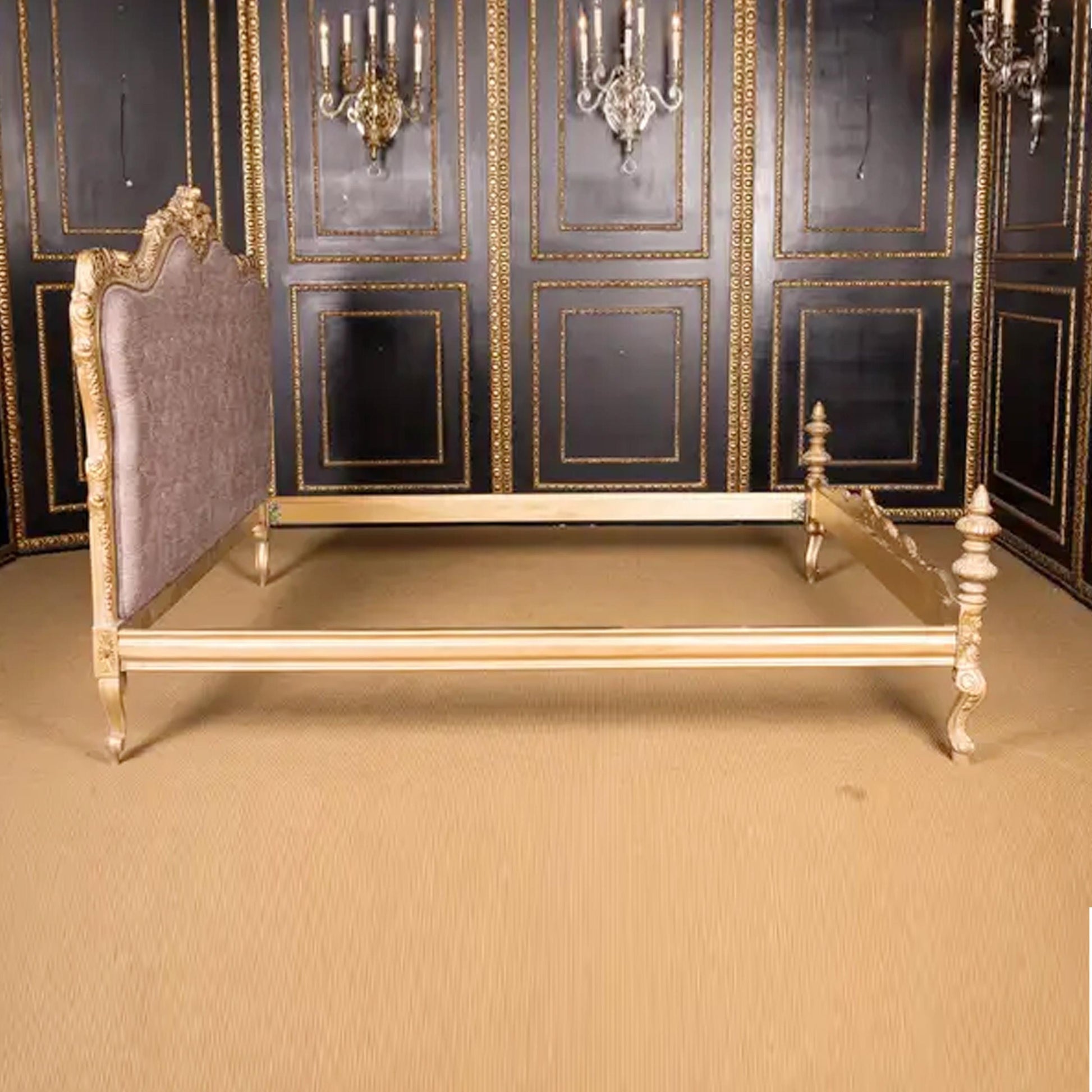 Handmade Louis XV Style Bed: Giltwood & Violet Tufted Headboard