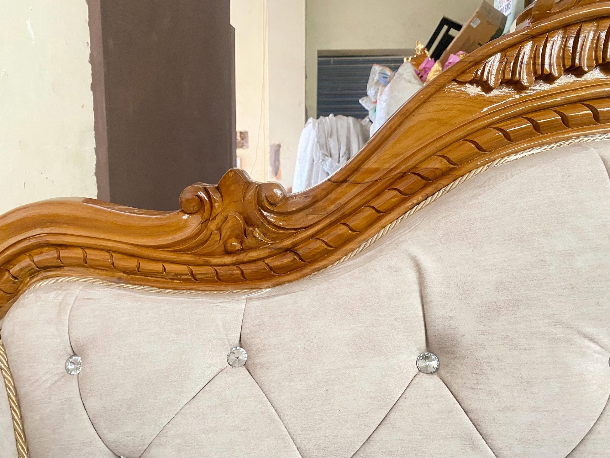 Handmade Louis XVI Style Sofa: Teak Wood, Cream Upholstery