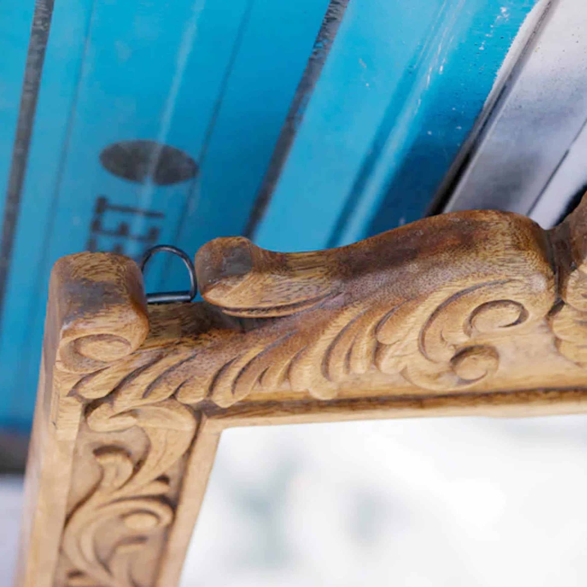 This is Handmade Wooden Hanging Mirror Fixture