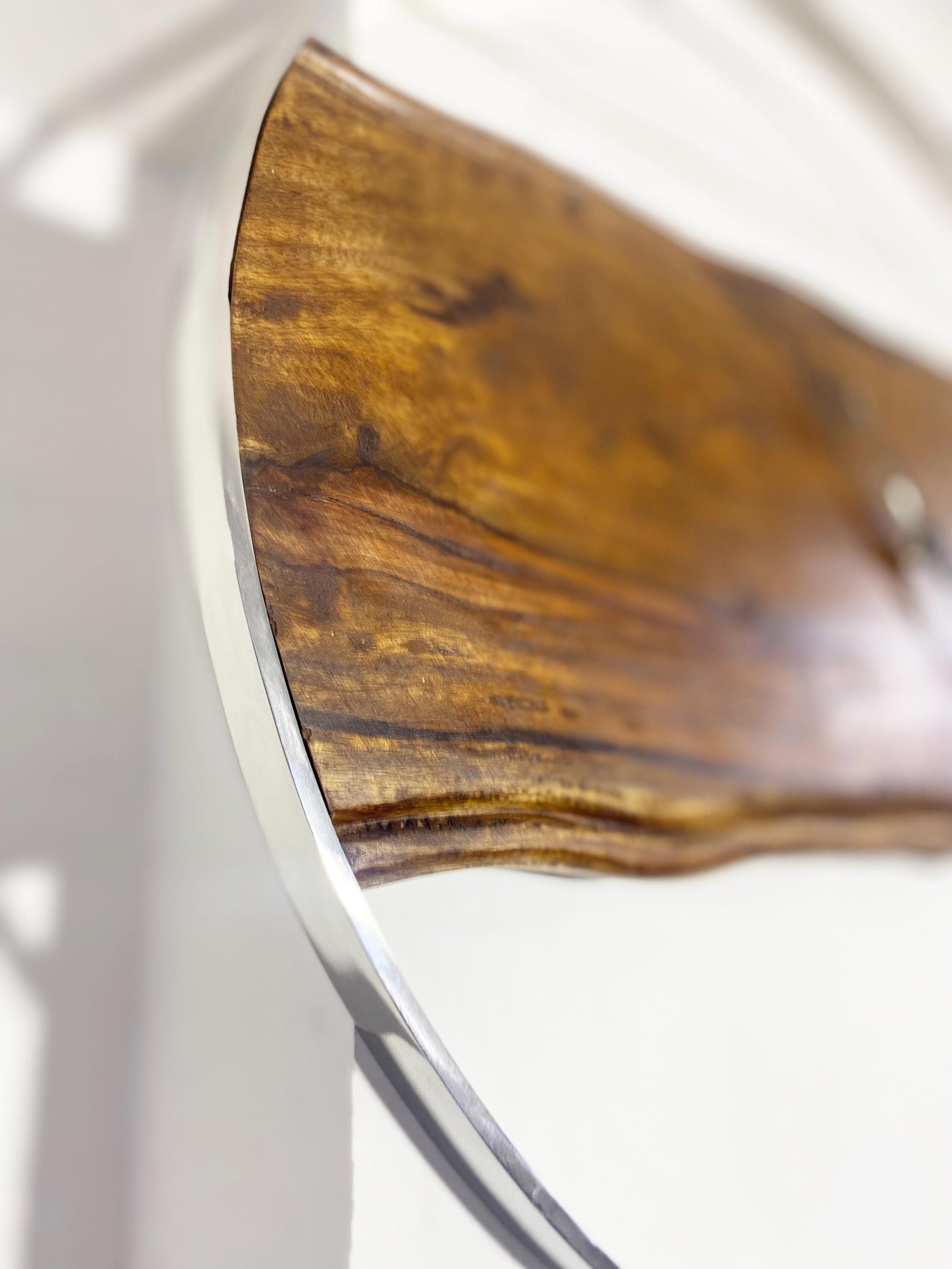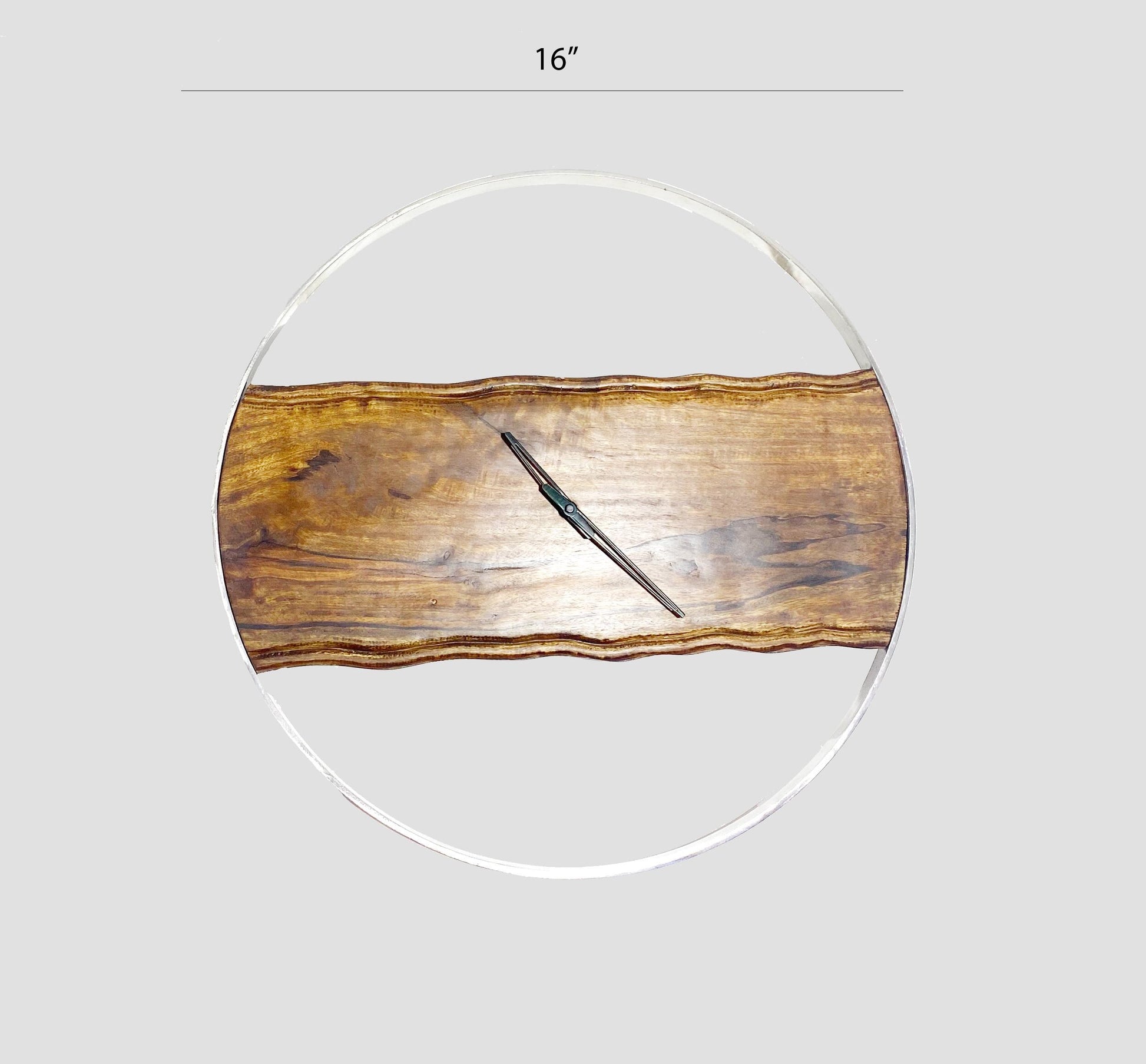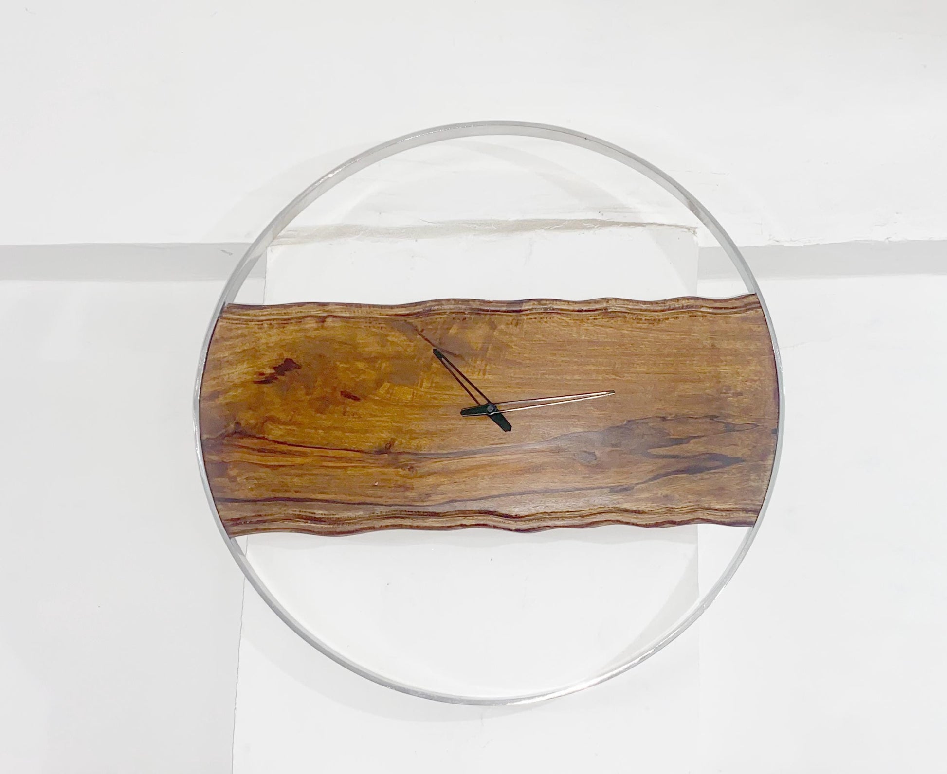 Handmade Mid-Century Modern Wooden Wall Clock with Chrome Ring