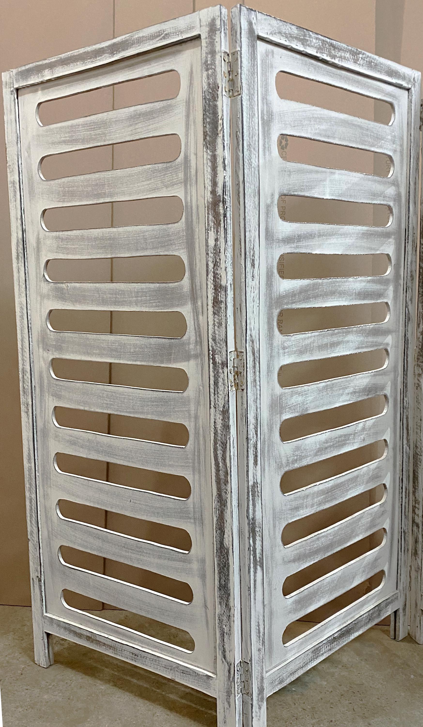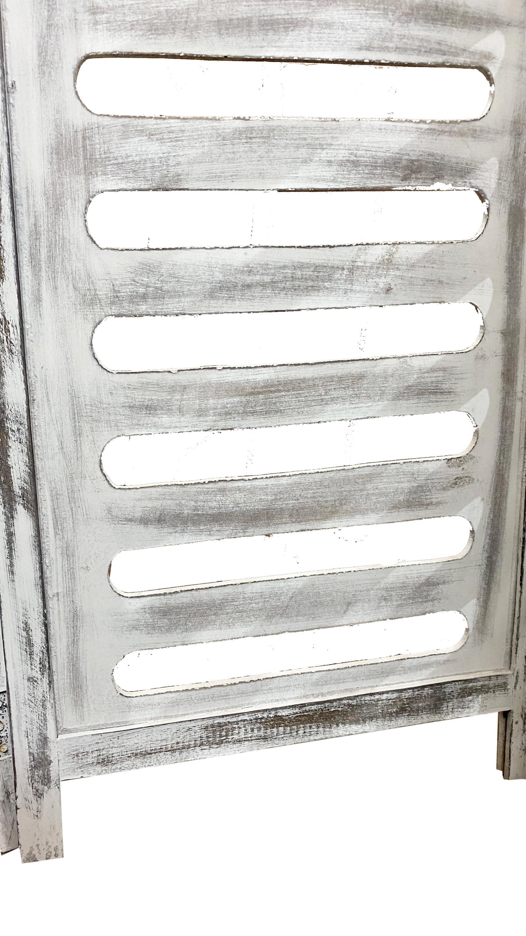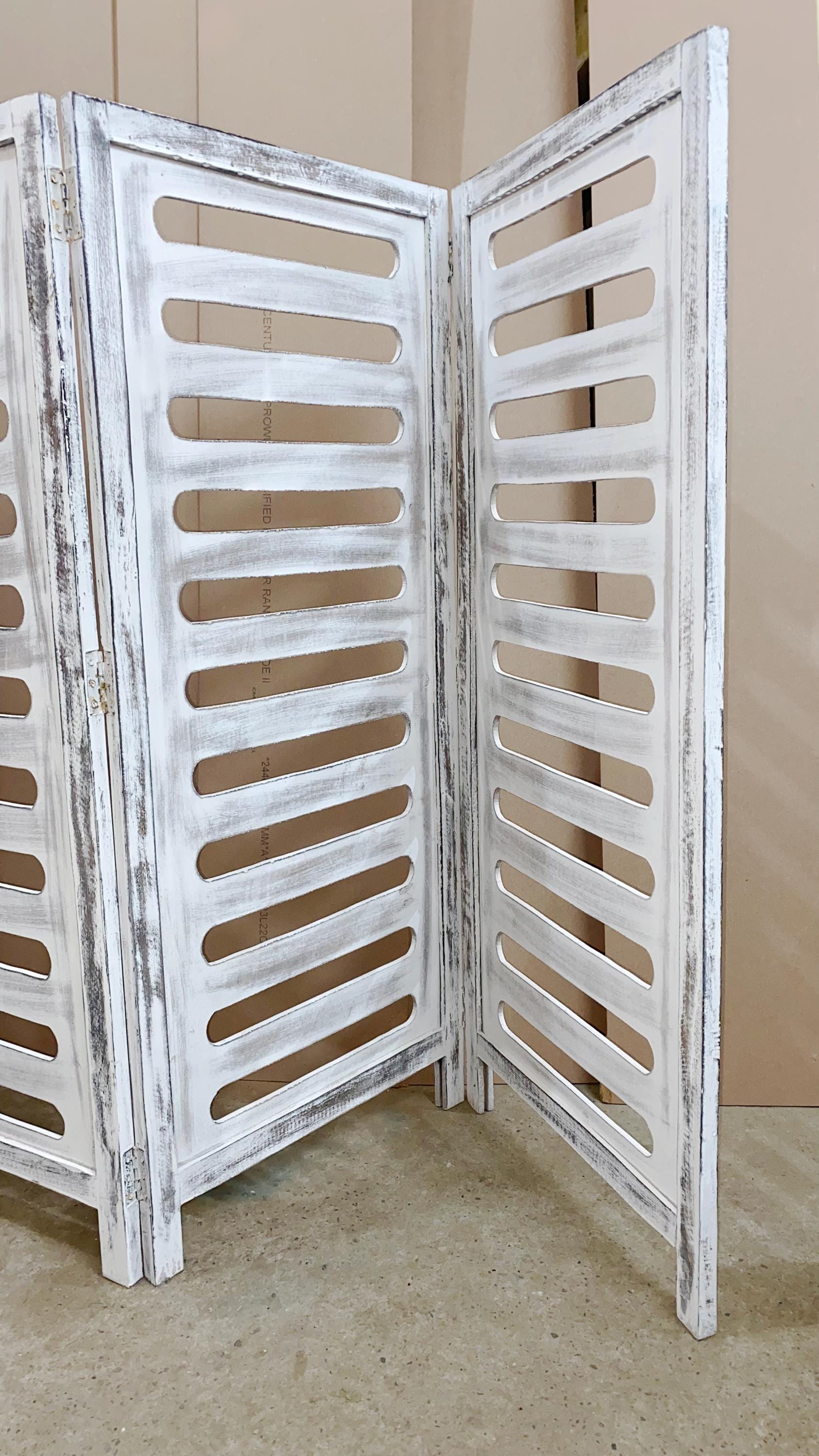 Handmade Rustic White Wood Folding Room Divider - 7 ft Tall