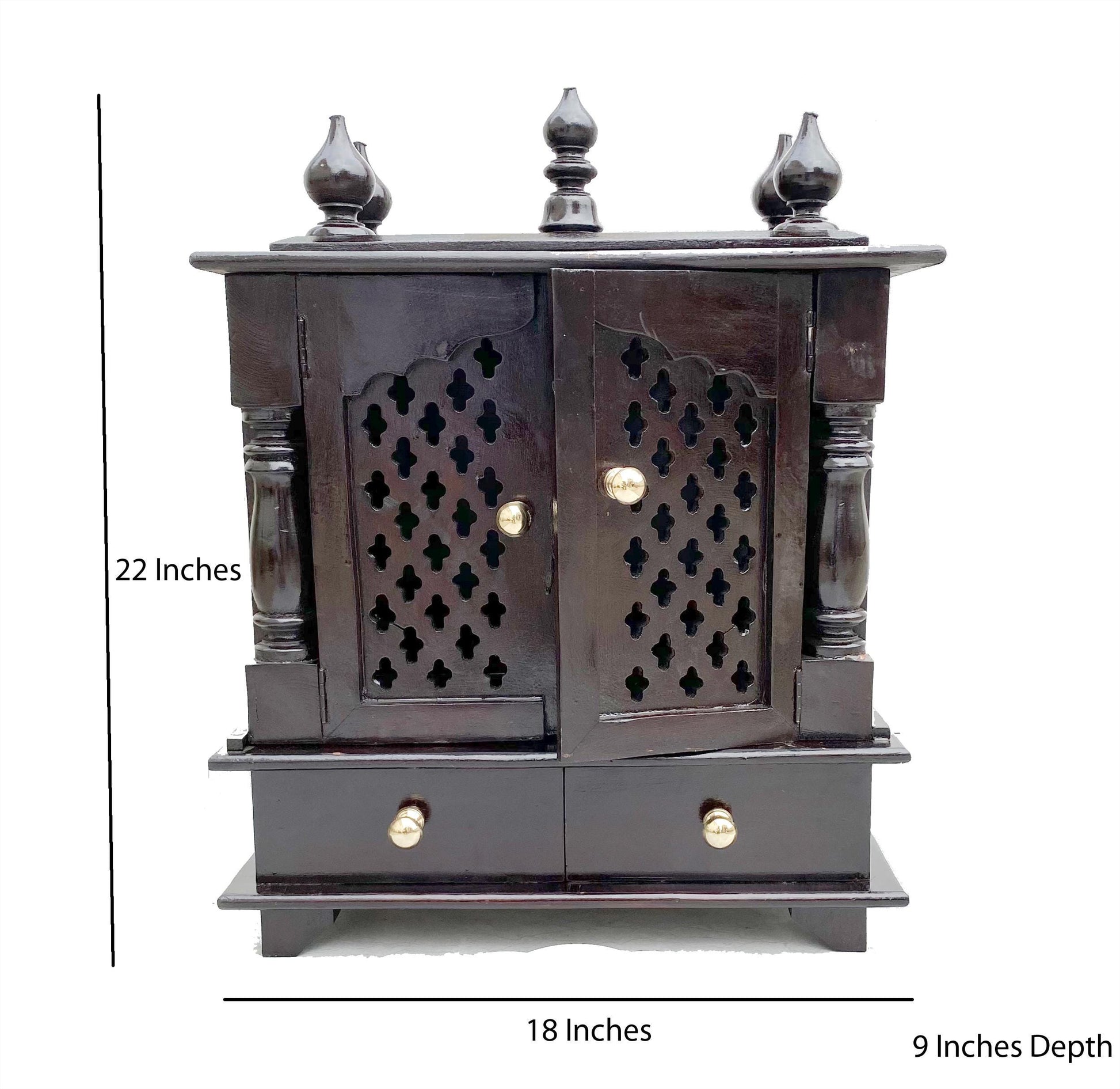 Handmade Walnut Wood Temple Mandir: 2-Shelf Wooden Shrine