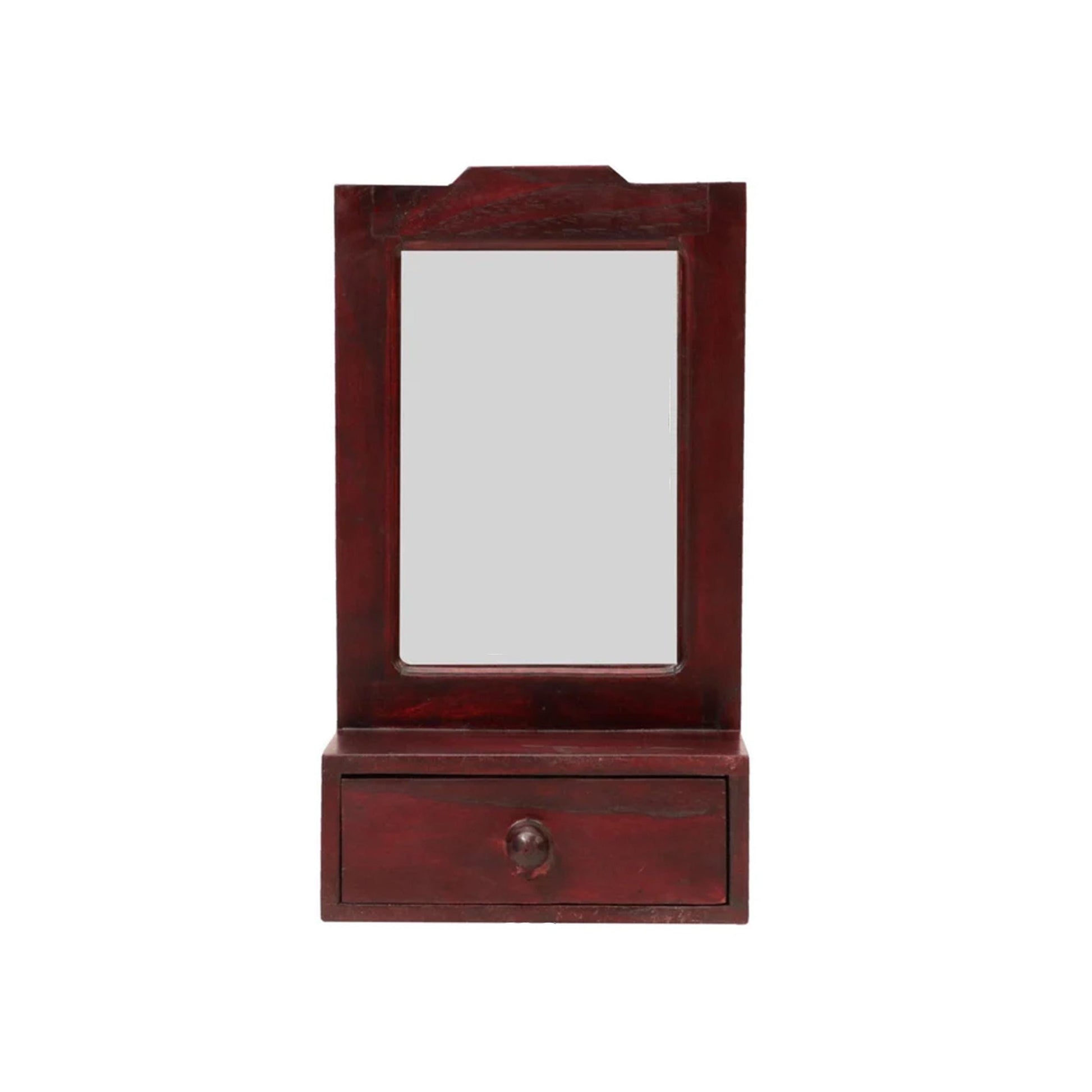Handmade Wood Wall Mirror with Drawer: Mid-Century Wall Decor