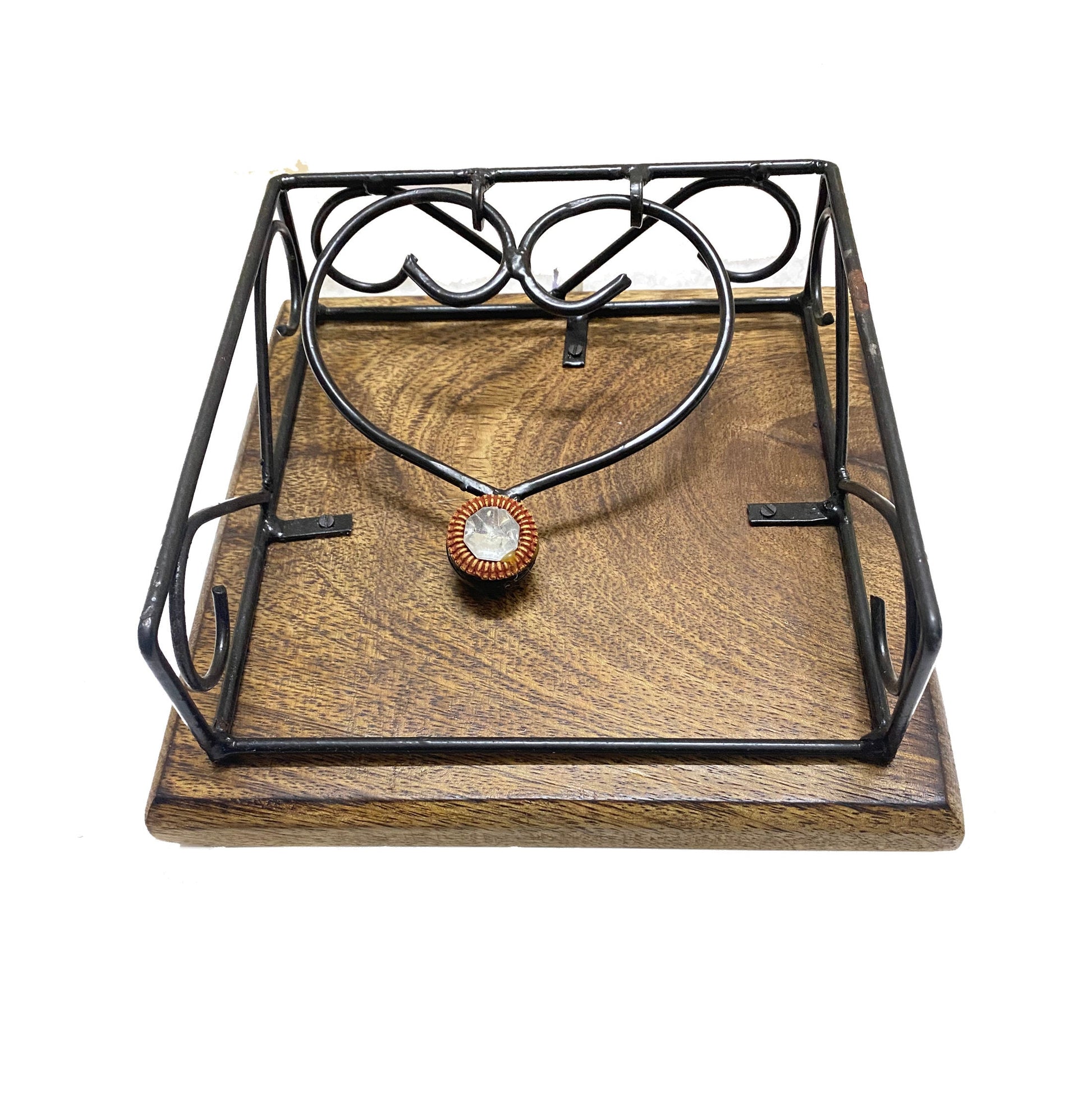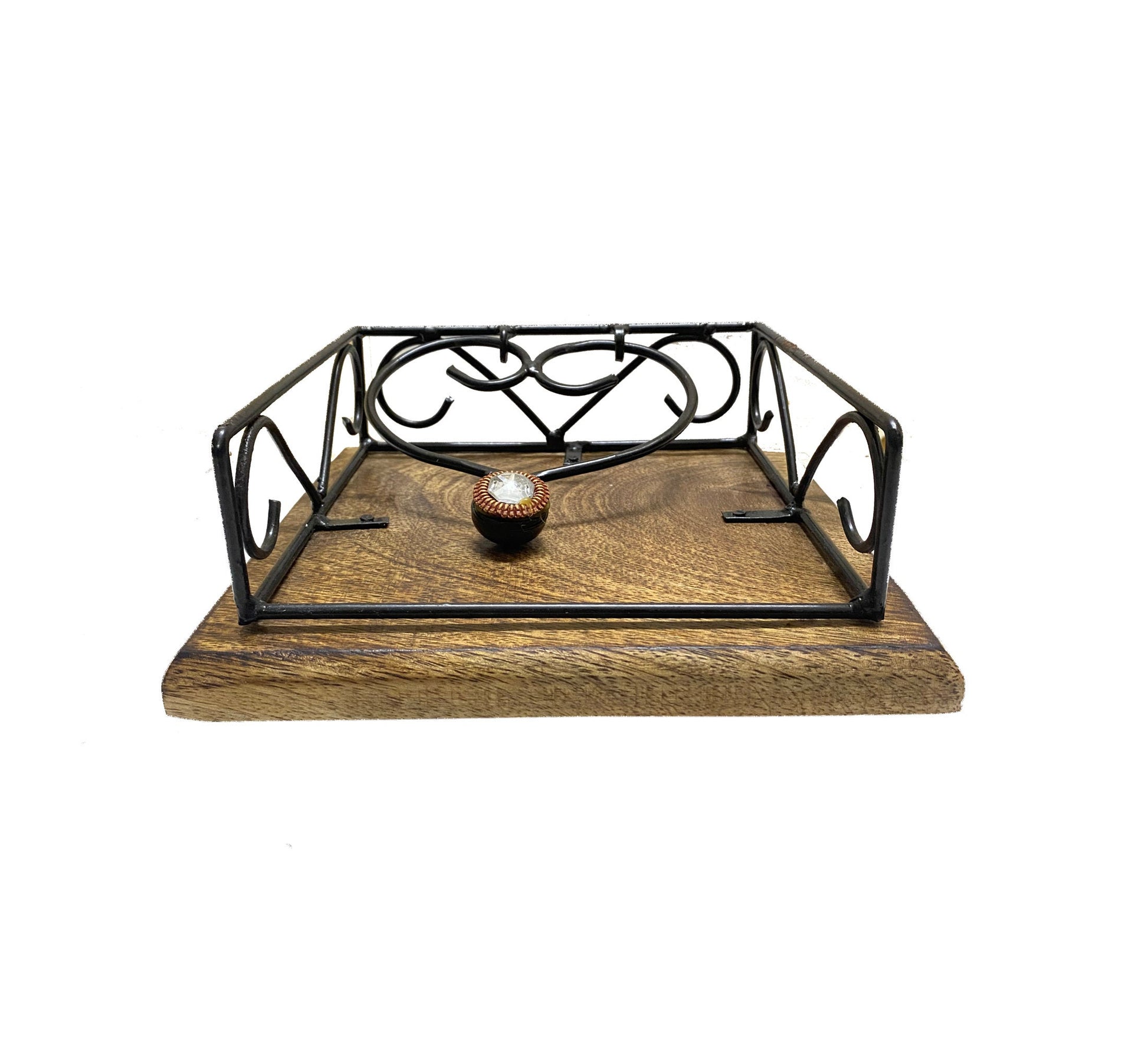 Handmade Wood & Wrought Iron Napkin Holder: Modern Tabletop Decor