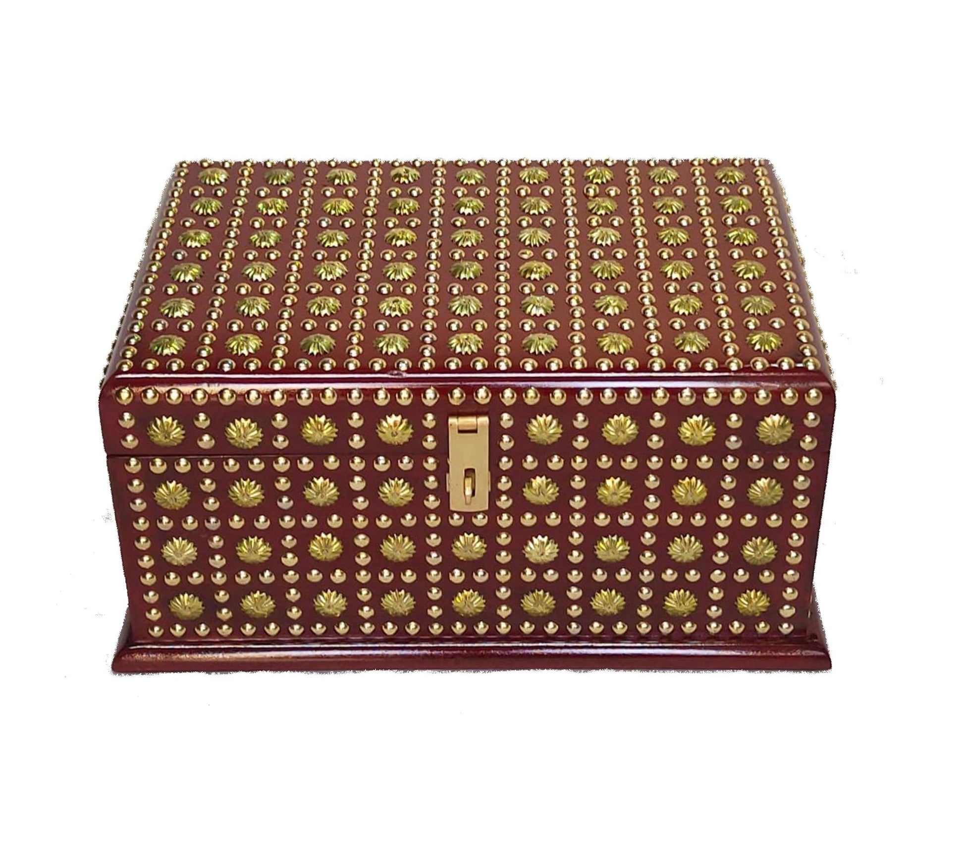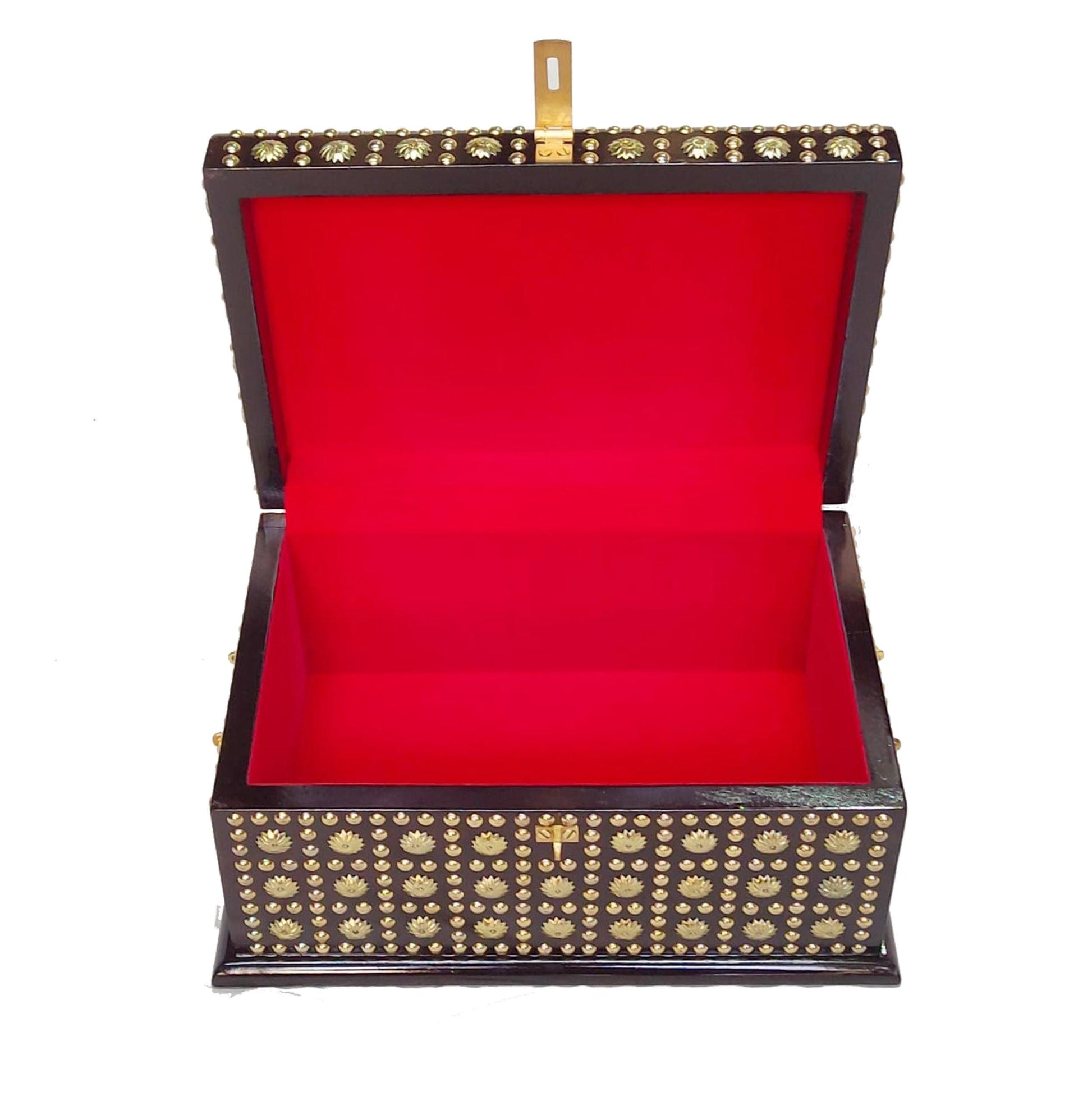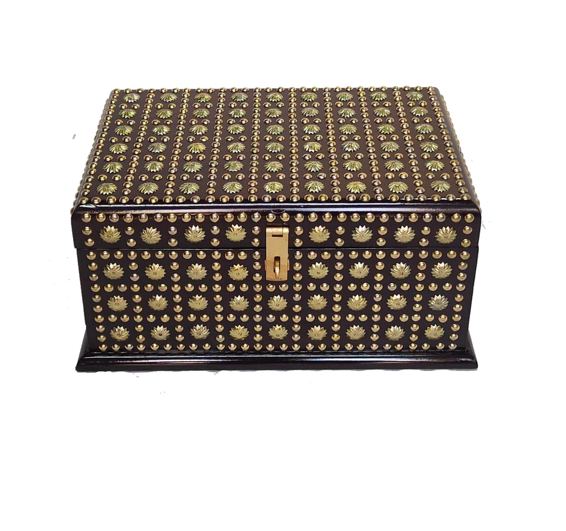Handmade Wooden Storage Chest: Decorative Brass Inlay Box