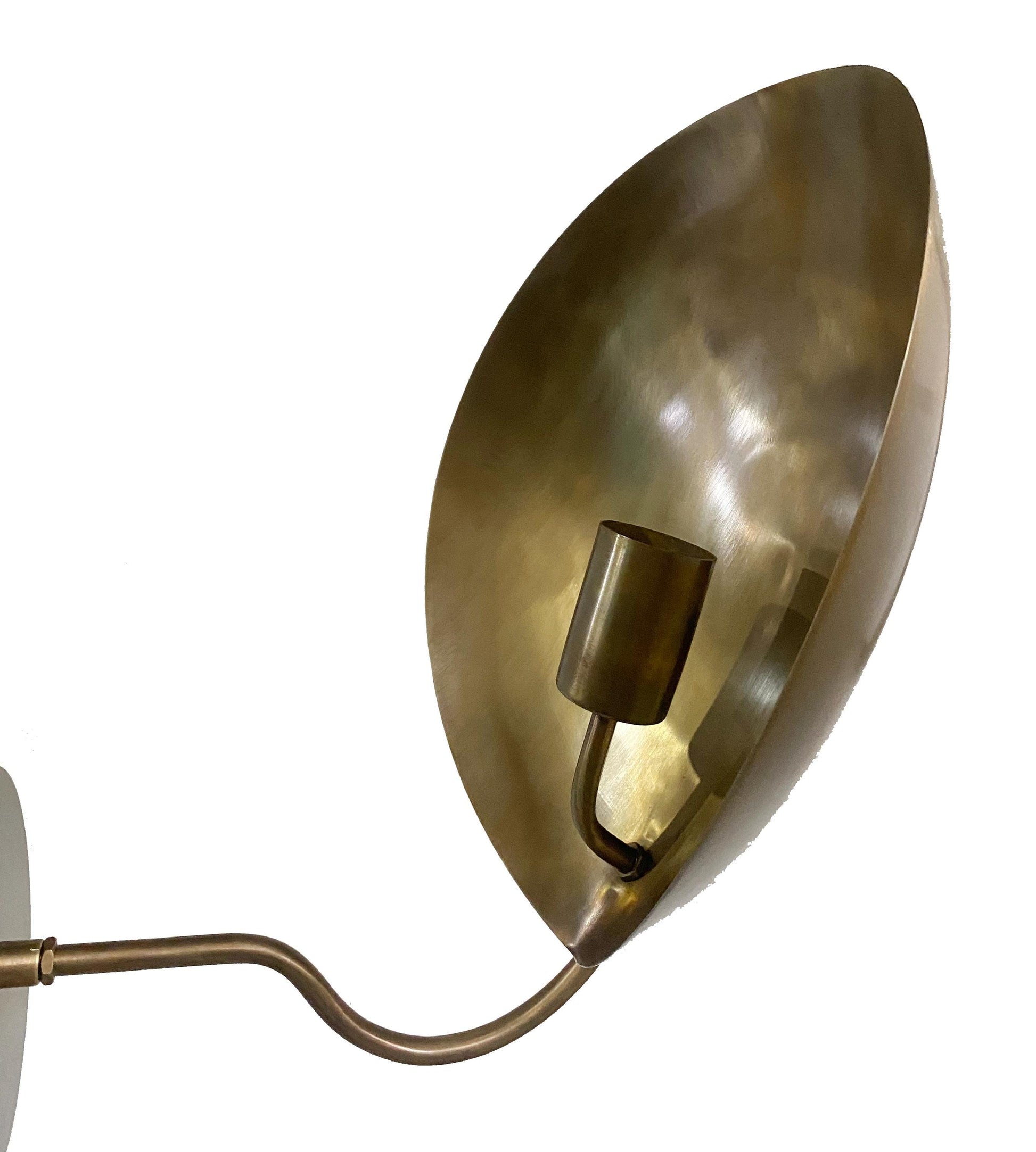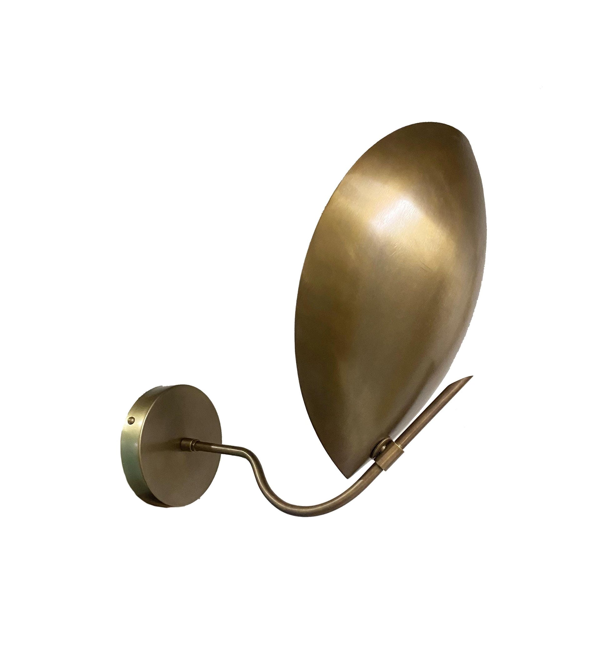 Mid Century Brass Wall Sconce: Handmade Curved Disk Light Fixture