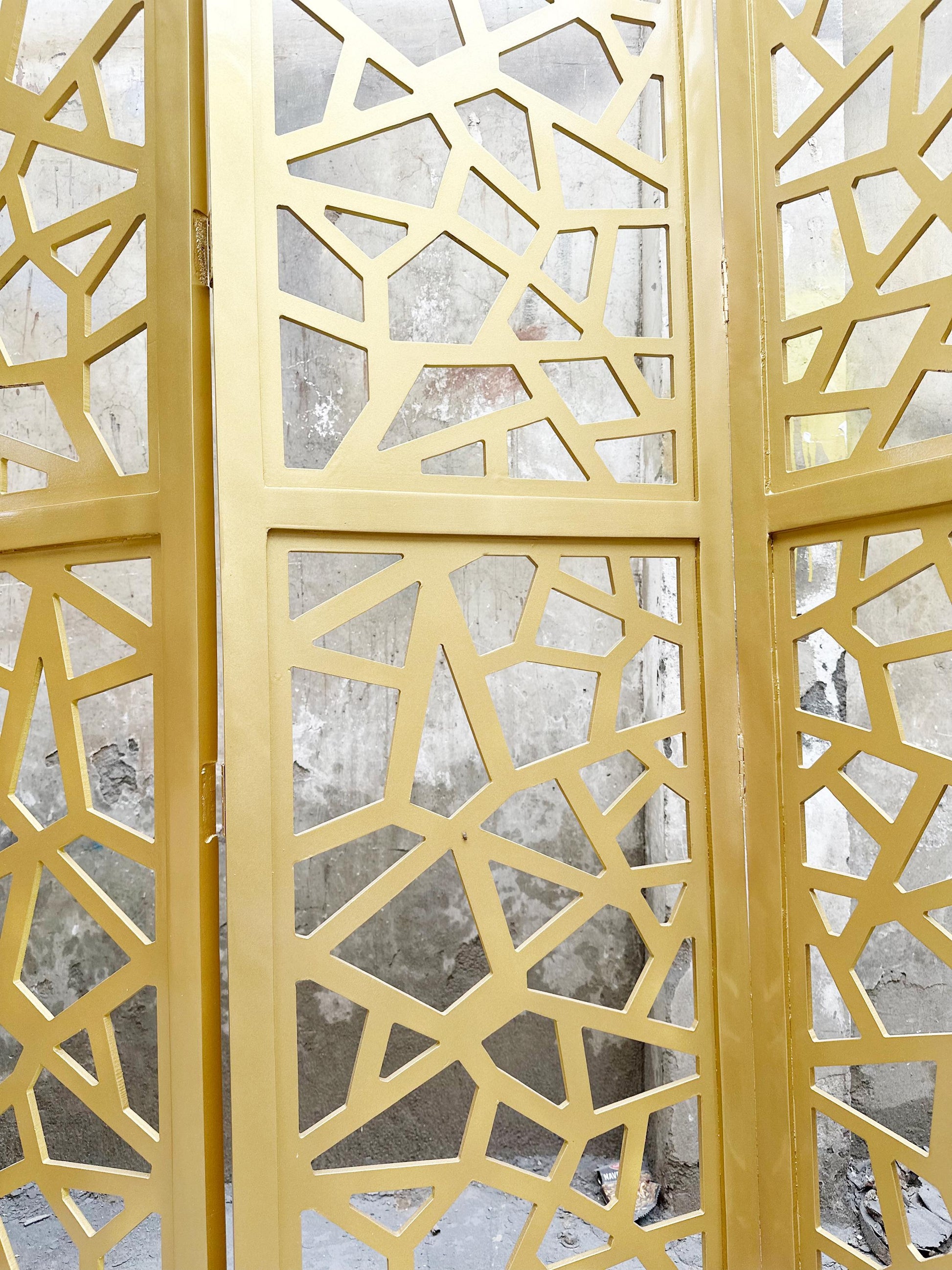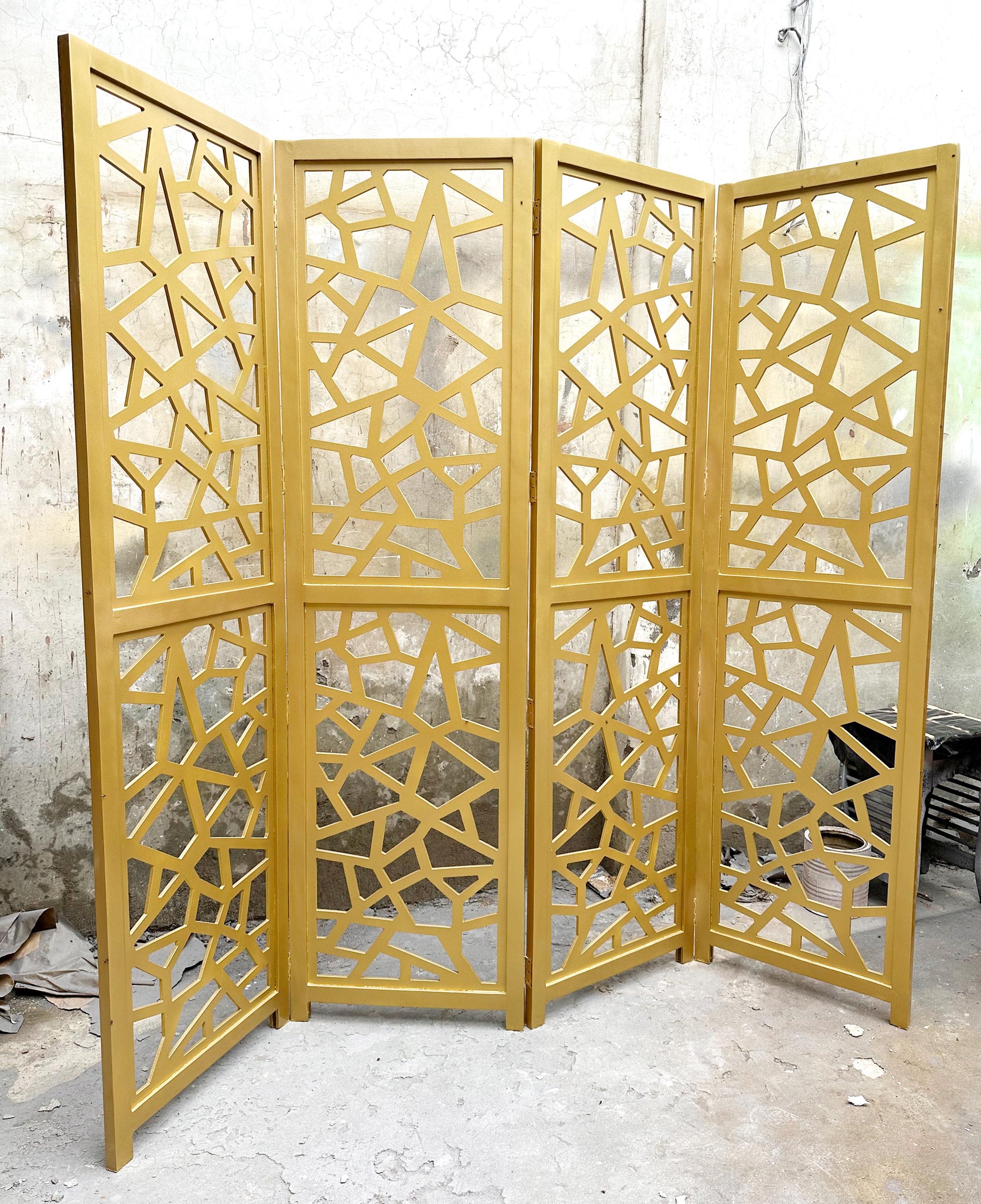 Mid century Design Gold Wooden Folding Divider, Partition, Handmade Self standing separator