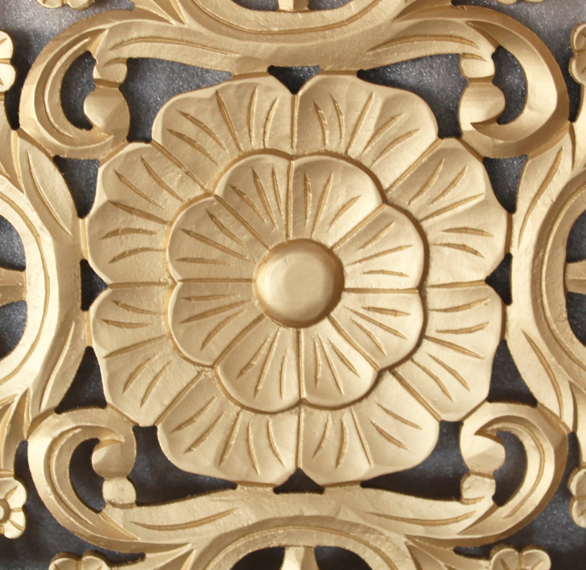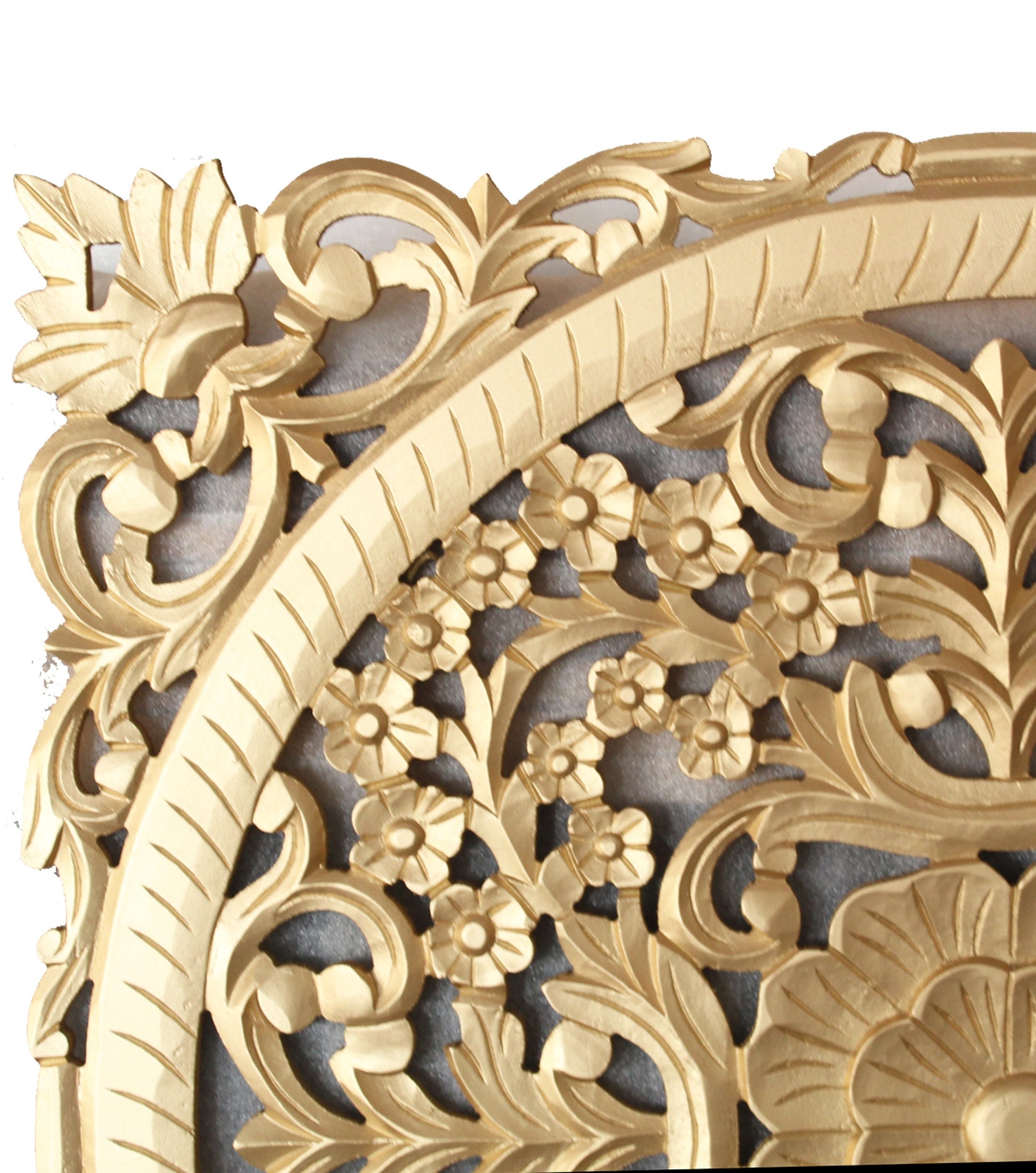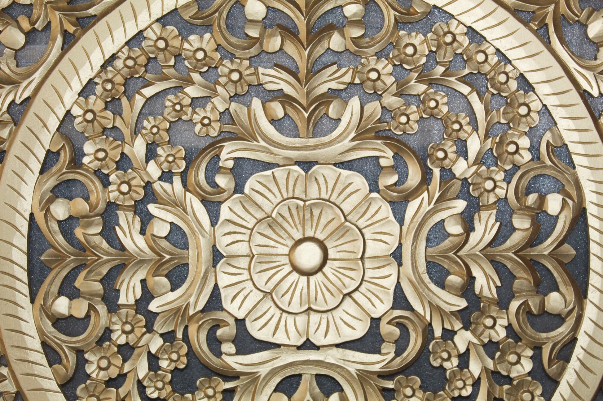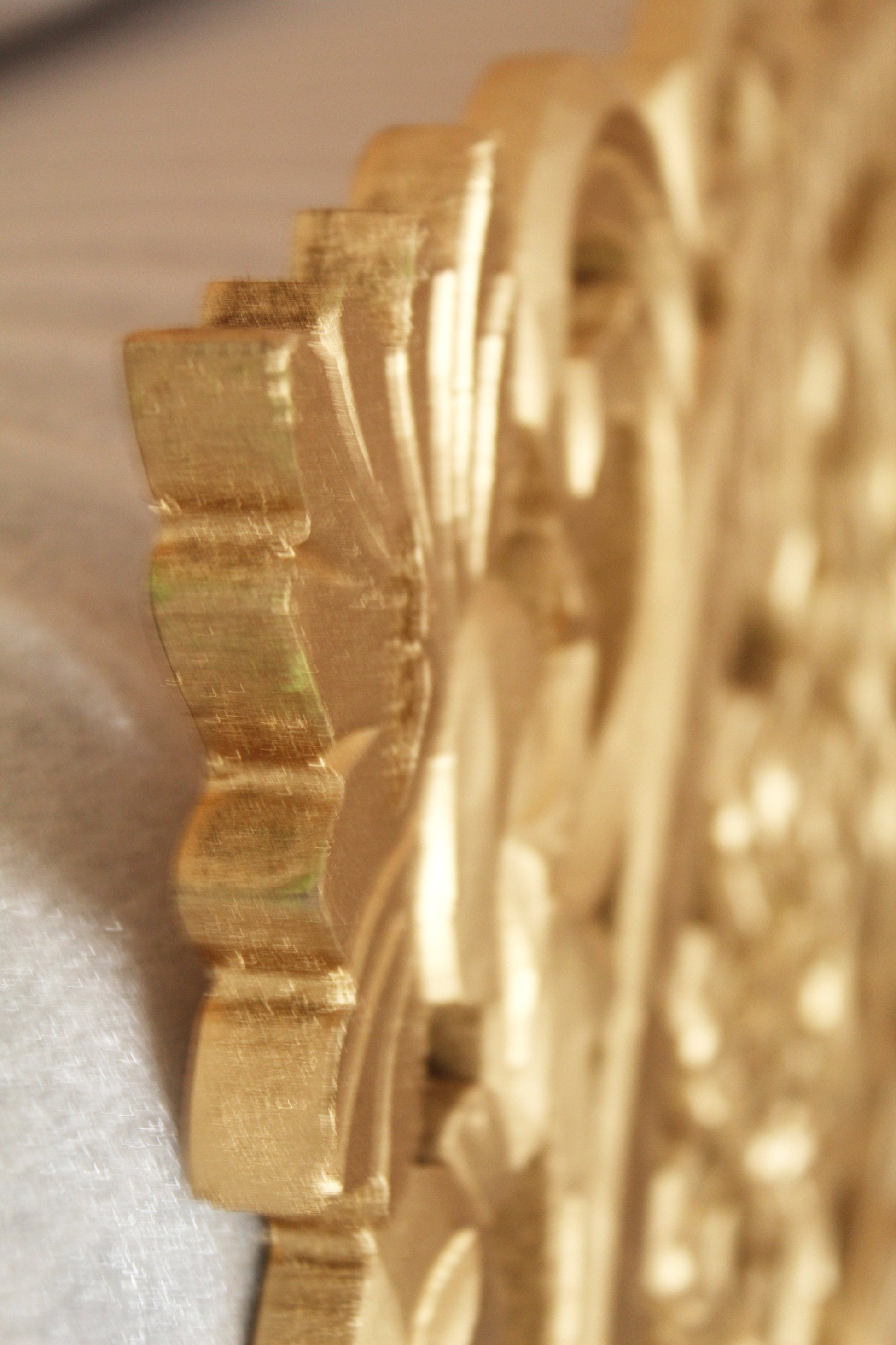 Mid century Gold Wooden Hanging Fixture, Handmade Large Carving Wall décor, mandola Arts