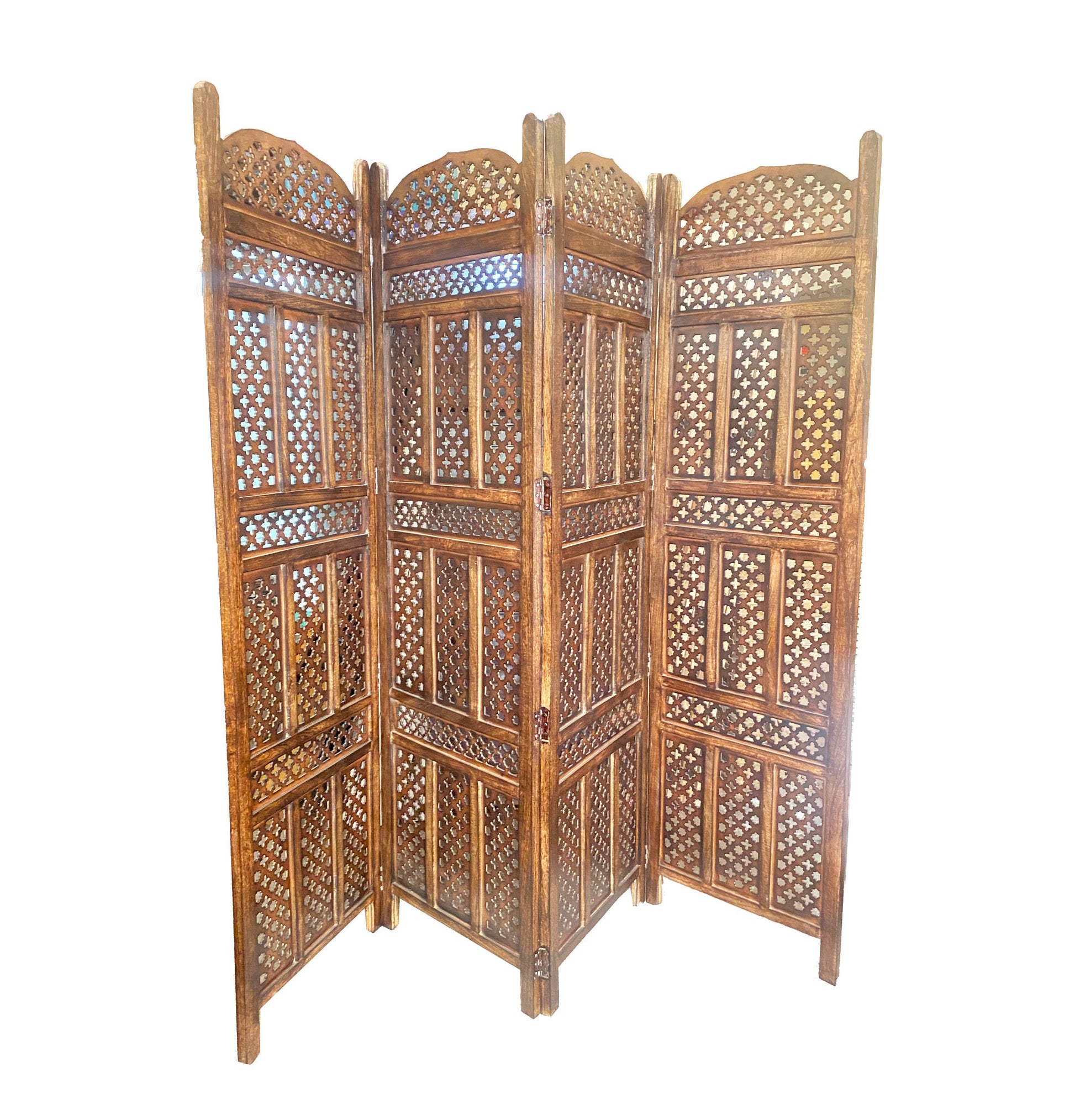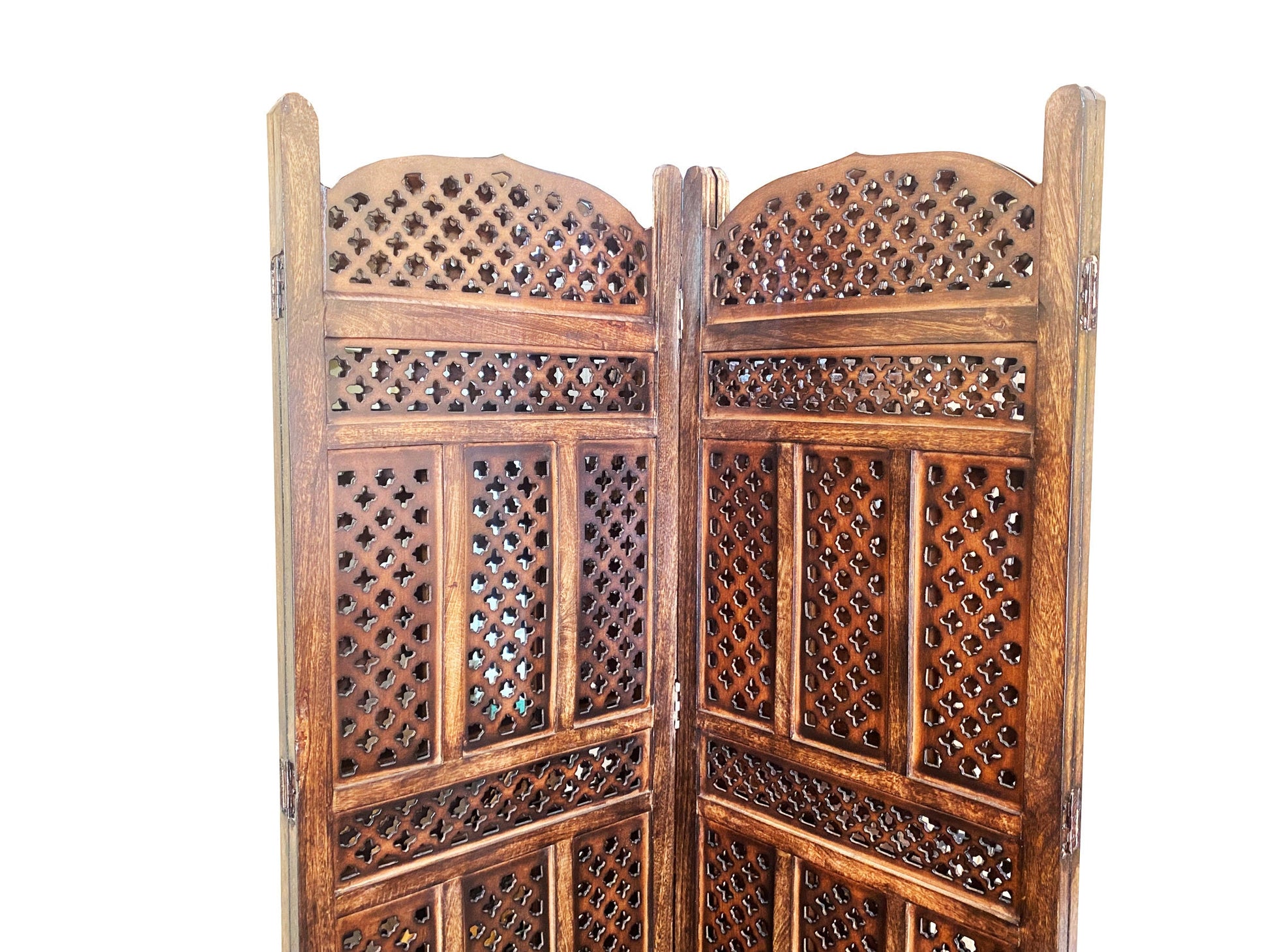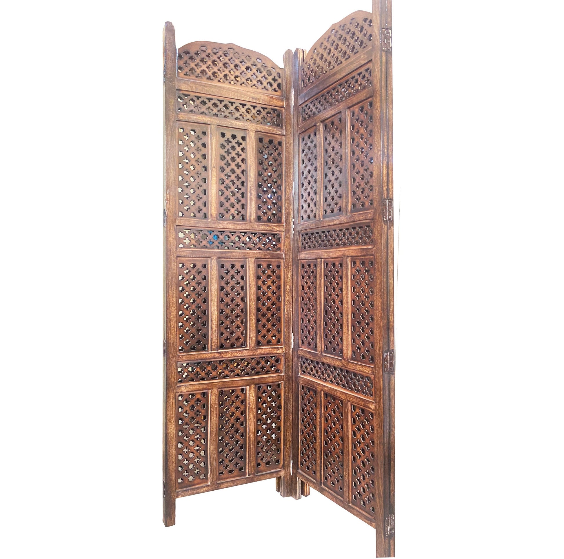 Mid century Mesh Design Round top Wooden Folding Divider, Partition, Handmade Self standing separator
