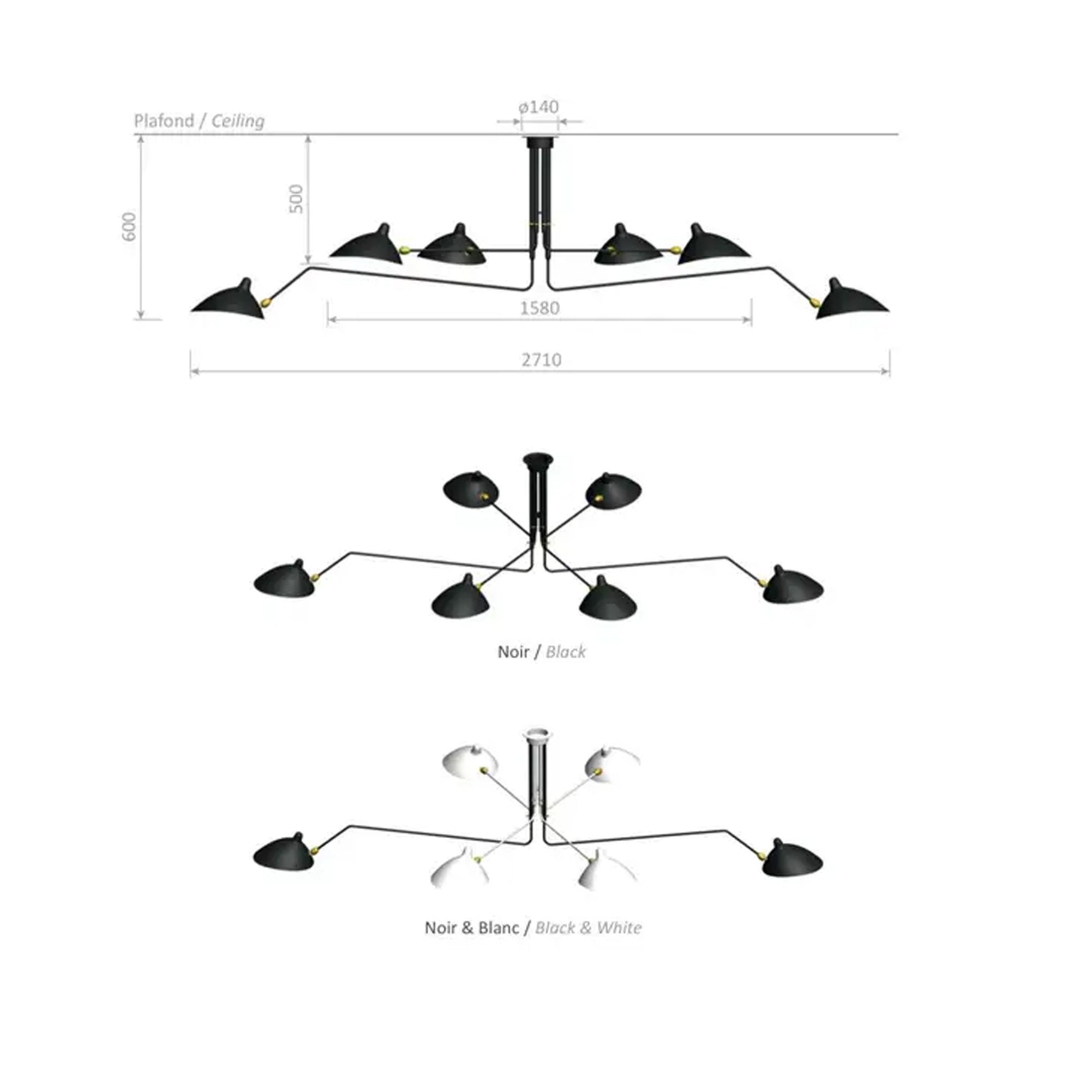Mid-Century Modern 6 Rotating Arms Ceiling Light Chandelier handmade brass lamp