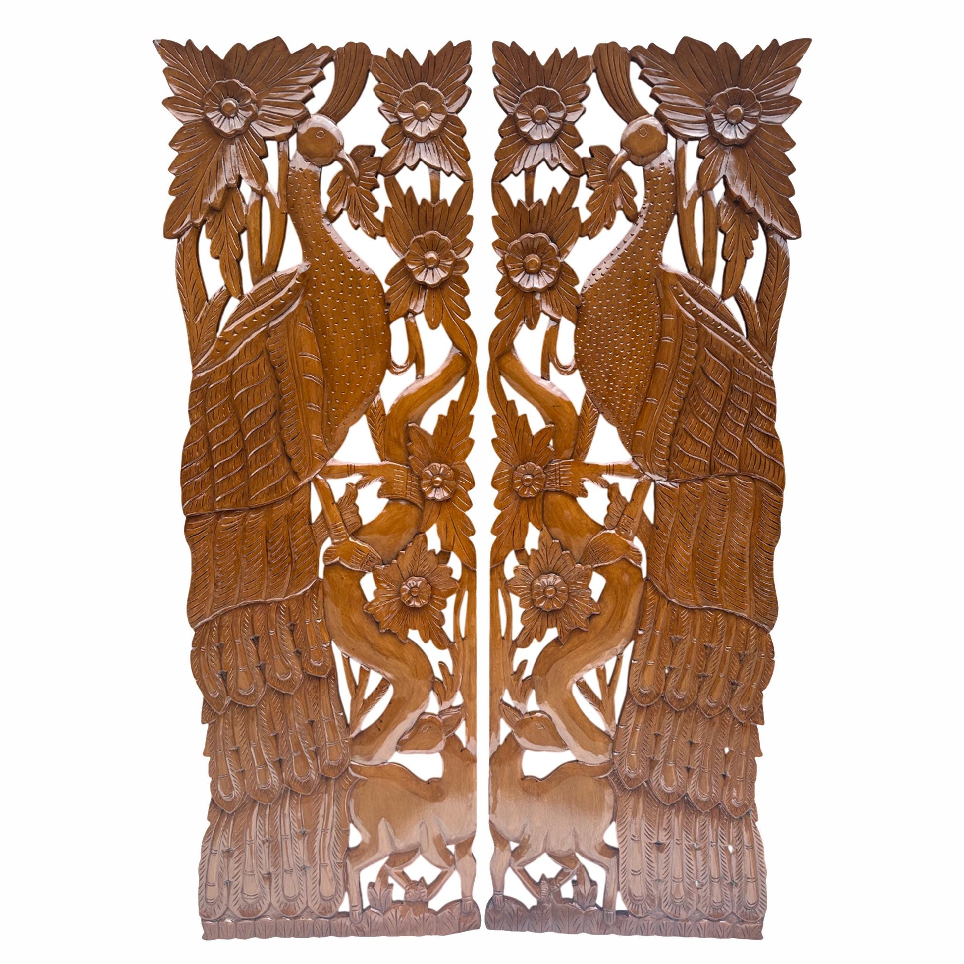 Peacock and Deer carved design wall panels