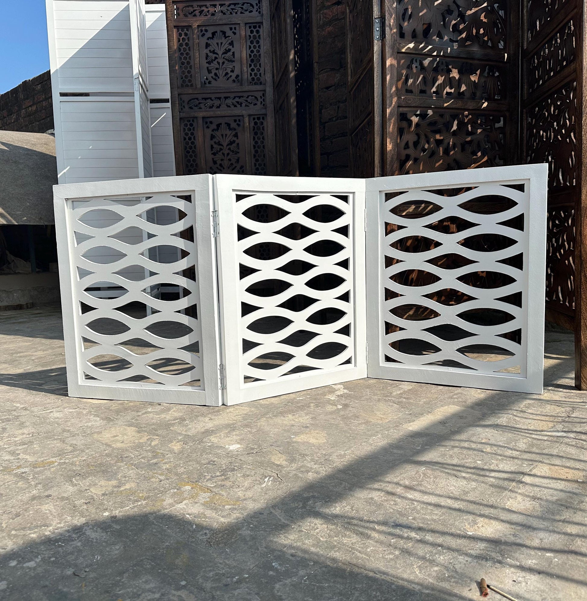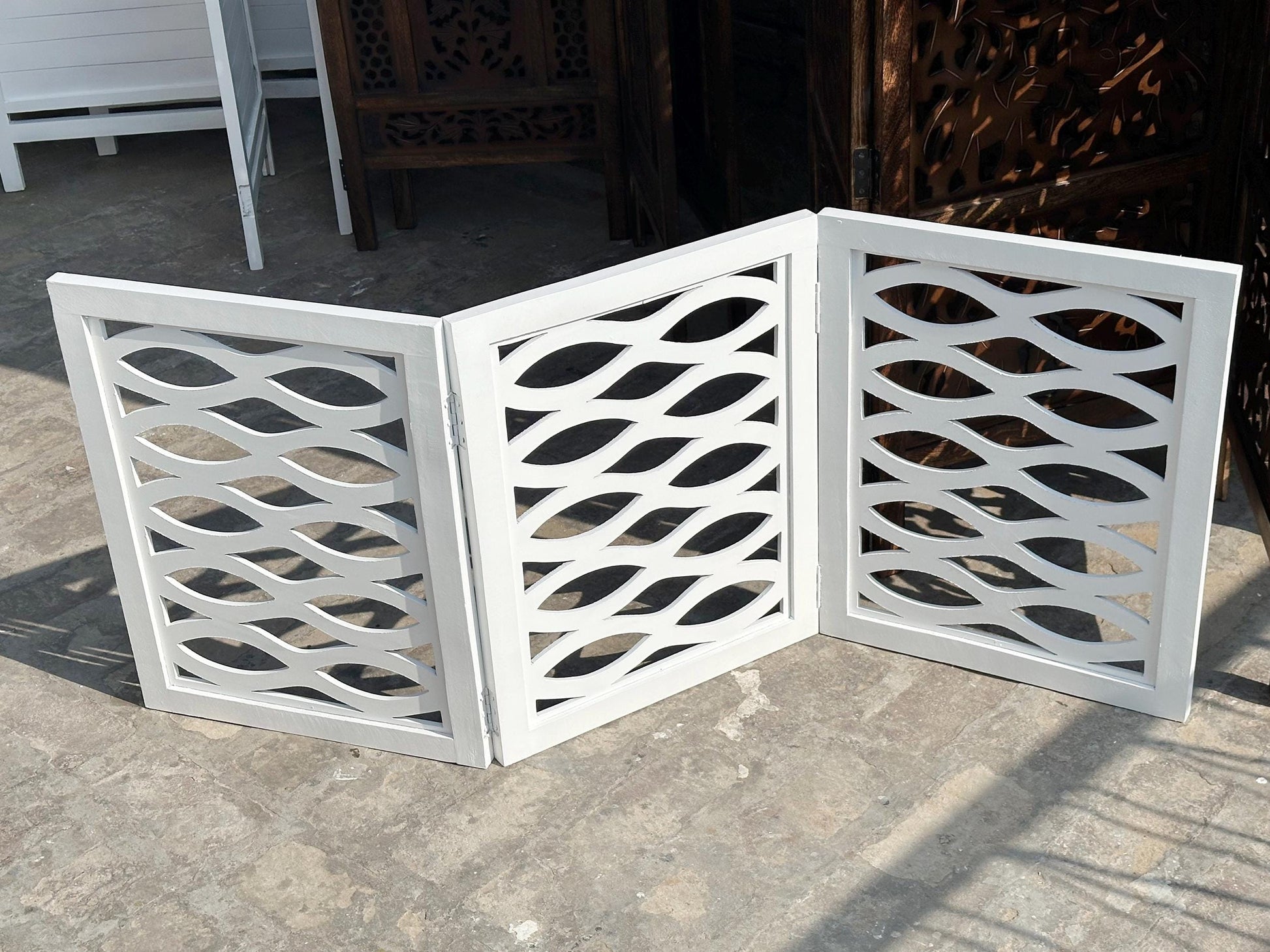Mid-Century Modern White Wood Folding Divider: Handmade Pet/Baby Partition