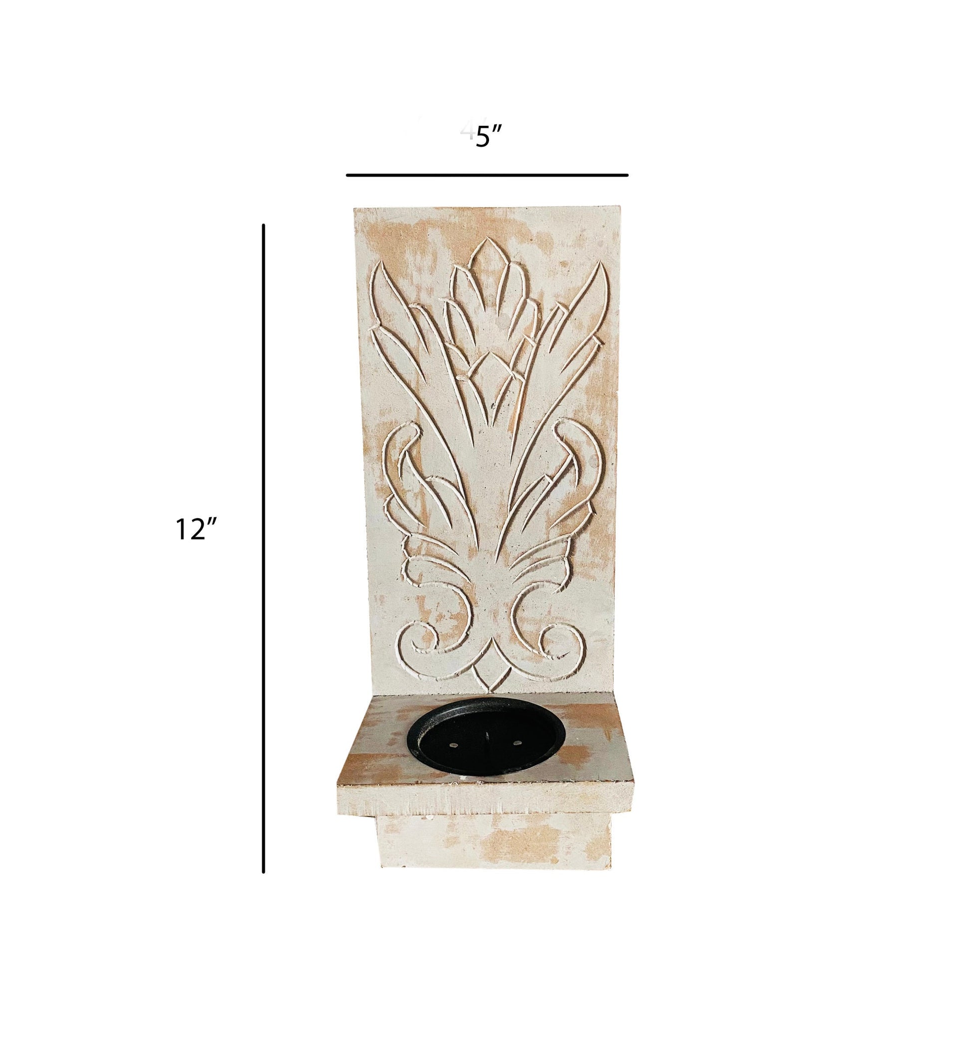 Mid century Rustic White Wooden Pallet Carving Wall Mount Candle Holder Fixture