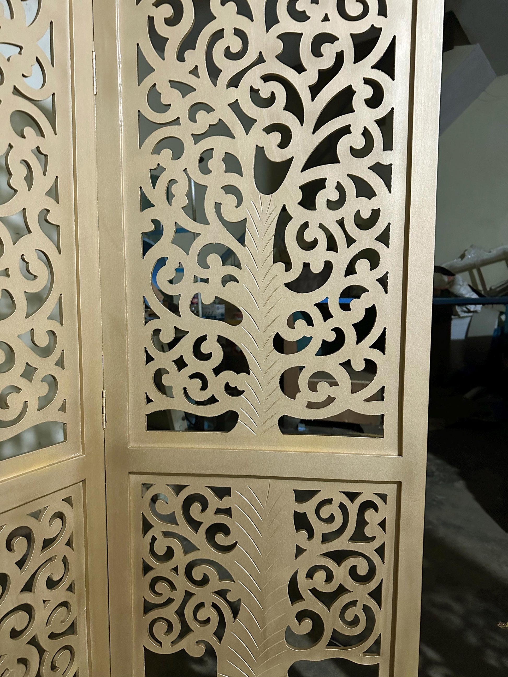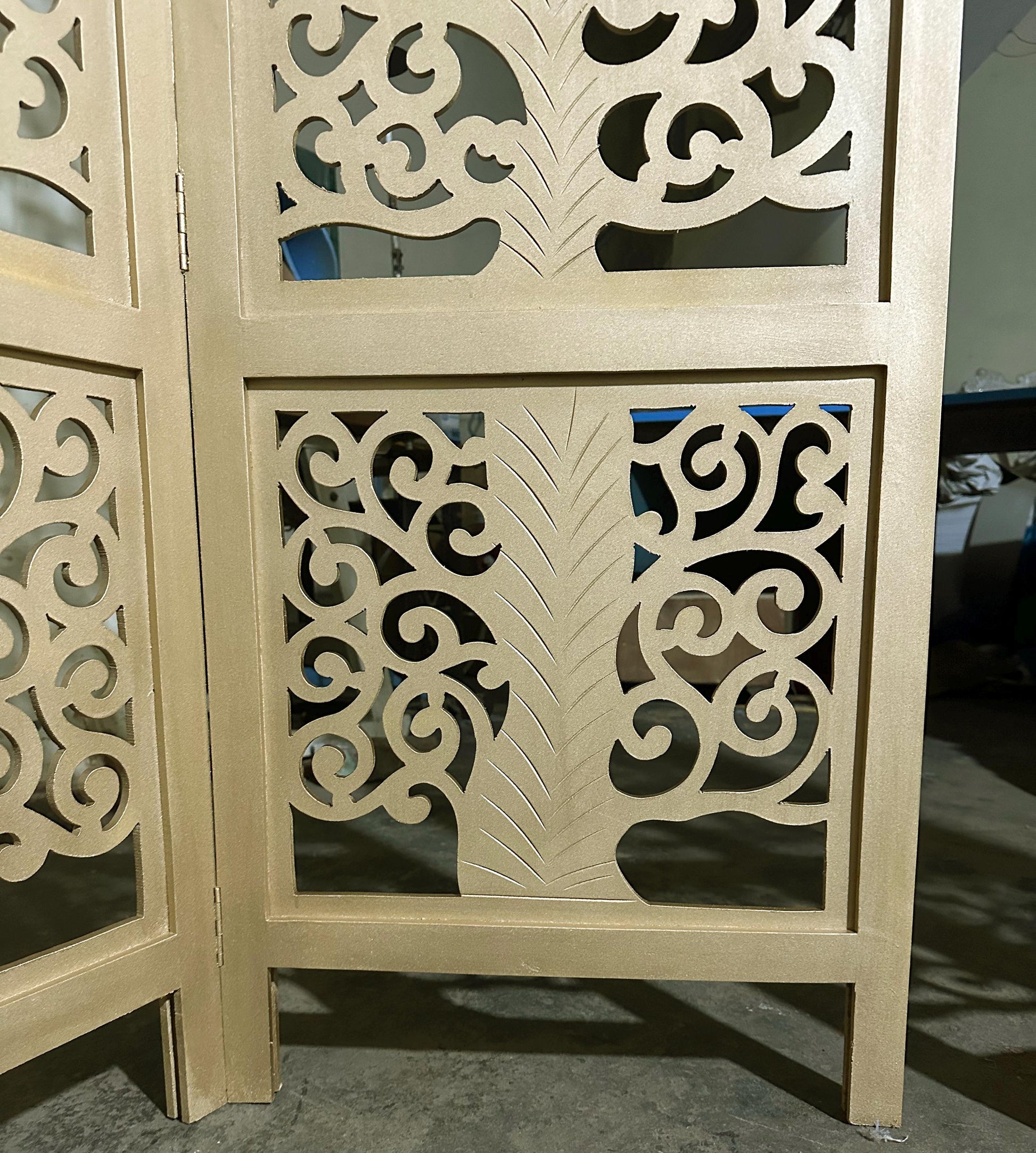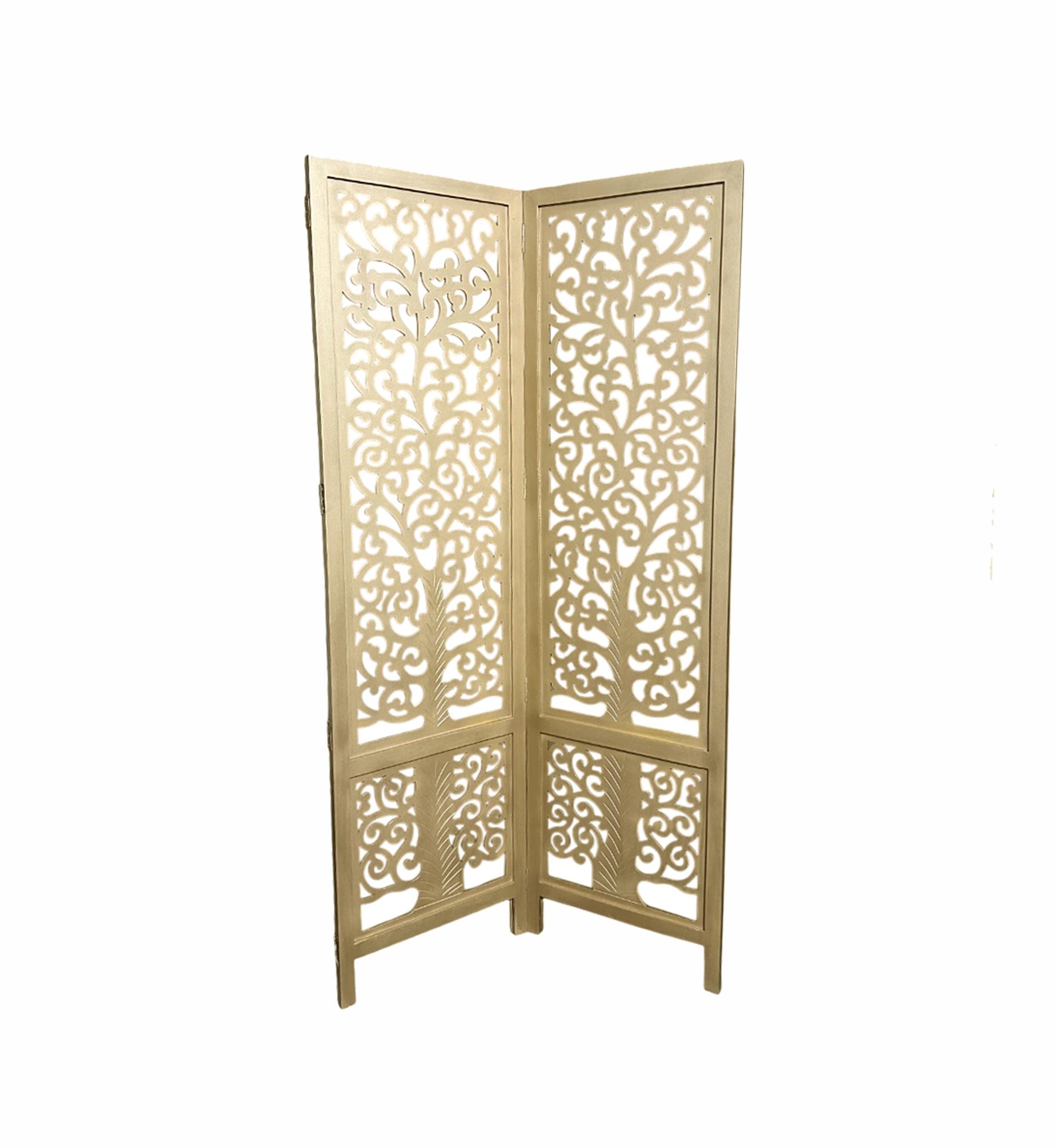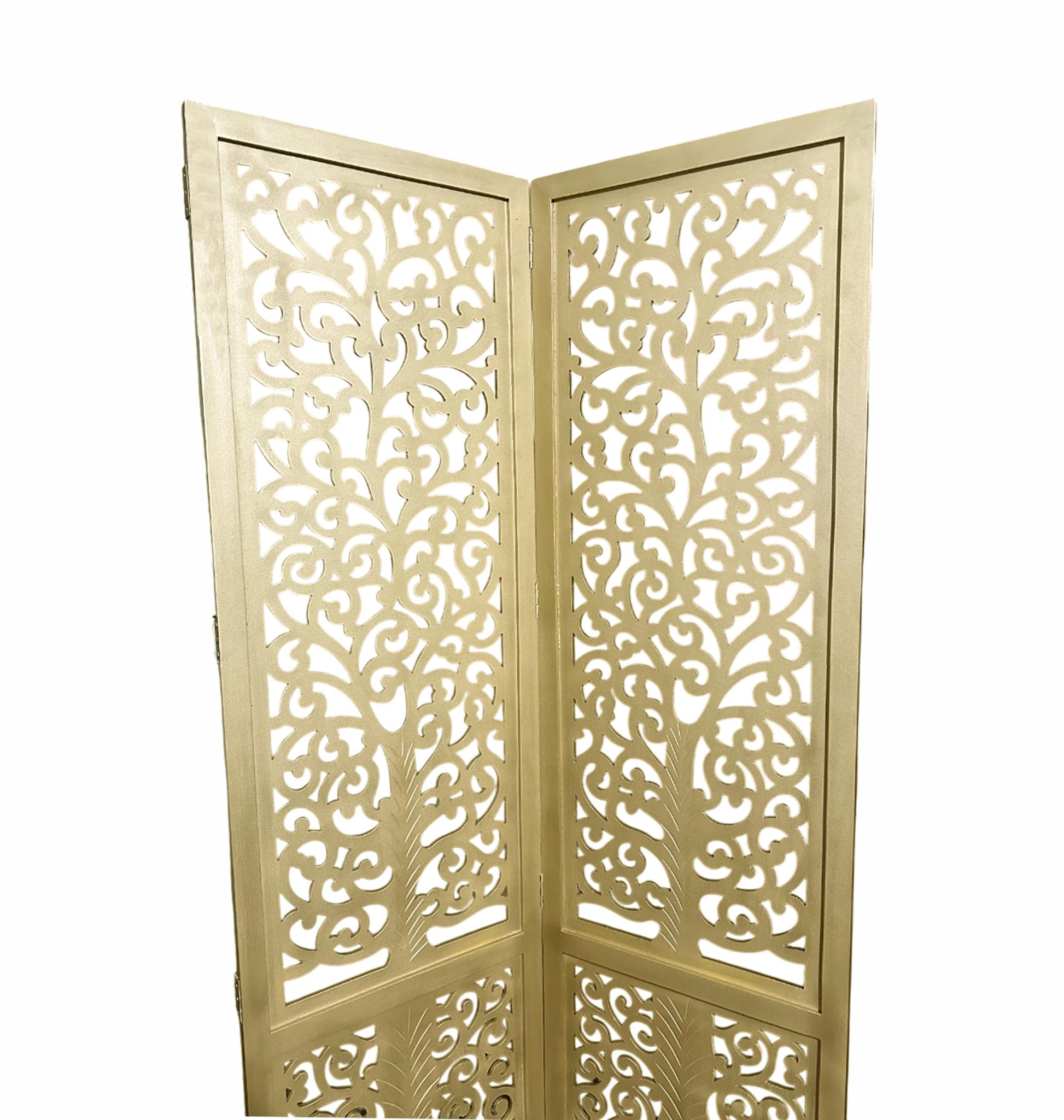 Mid century Tree style Gold Wooden Folding Divider, Partition, Handmade Self standing screen