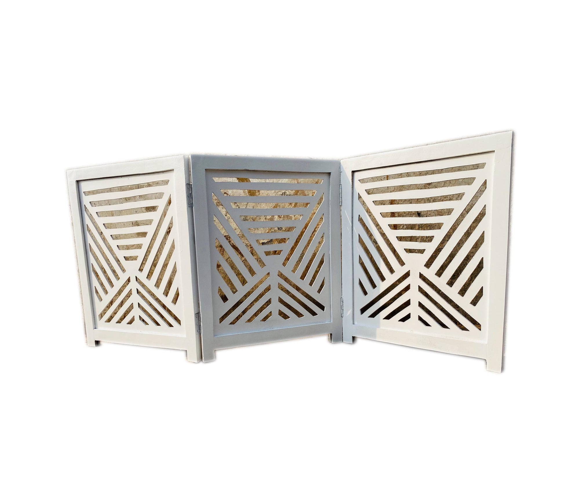 Mid-Century White Wood Folding Divider: Handmade Pet/Baby Partition