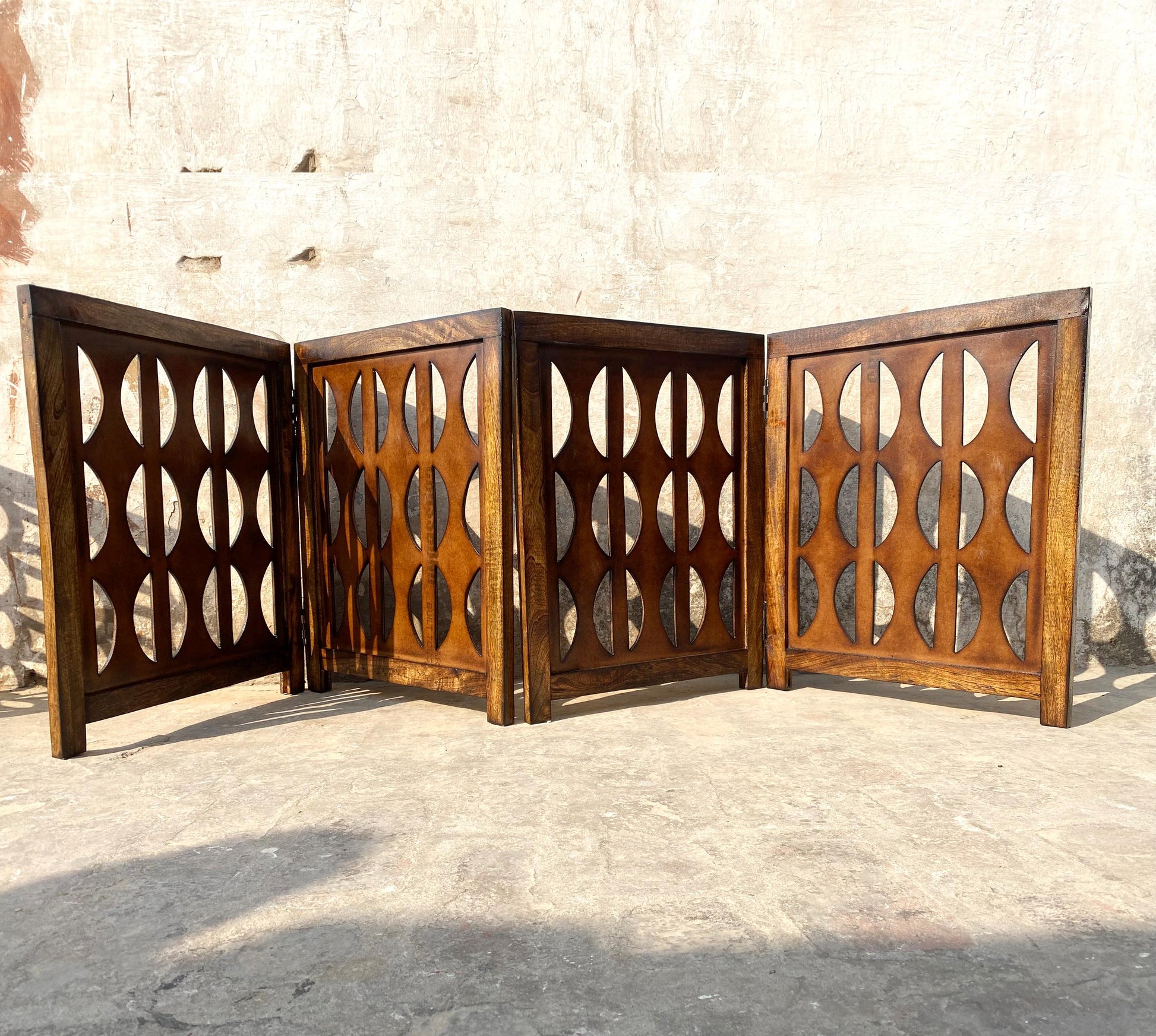 Mid Century Wooden Folding Room Divider: Handmade Partition