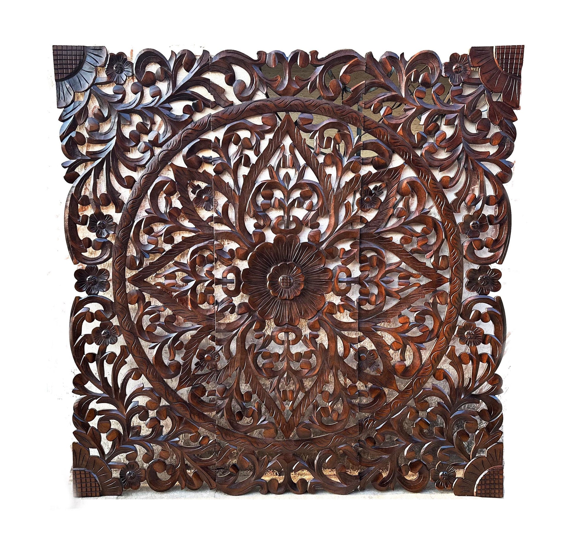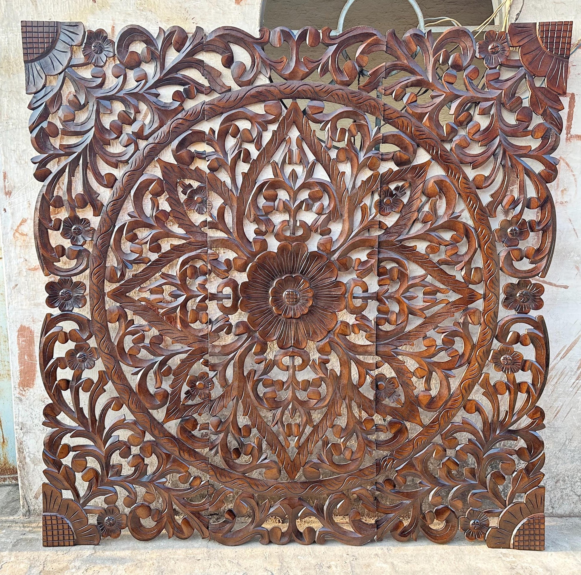 Mid century Wooden Hanging Fixture, Handmade Large Brown Carving Wall décor, mandola Arts