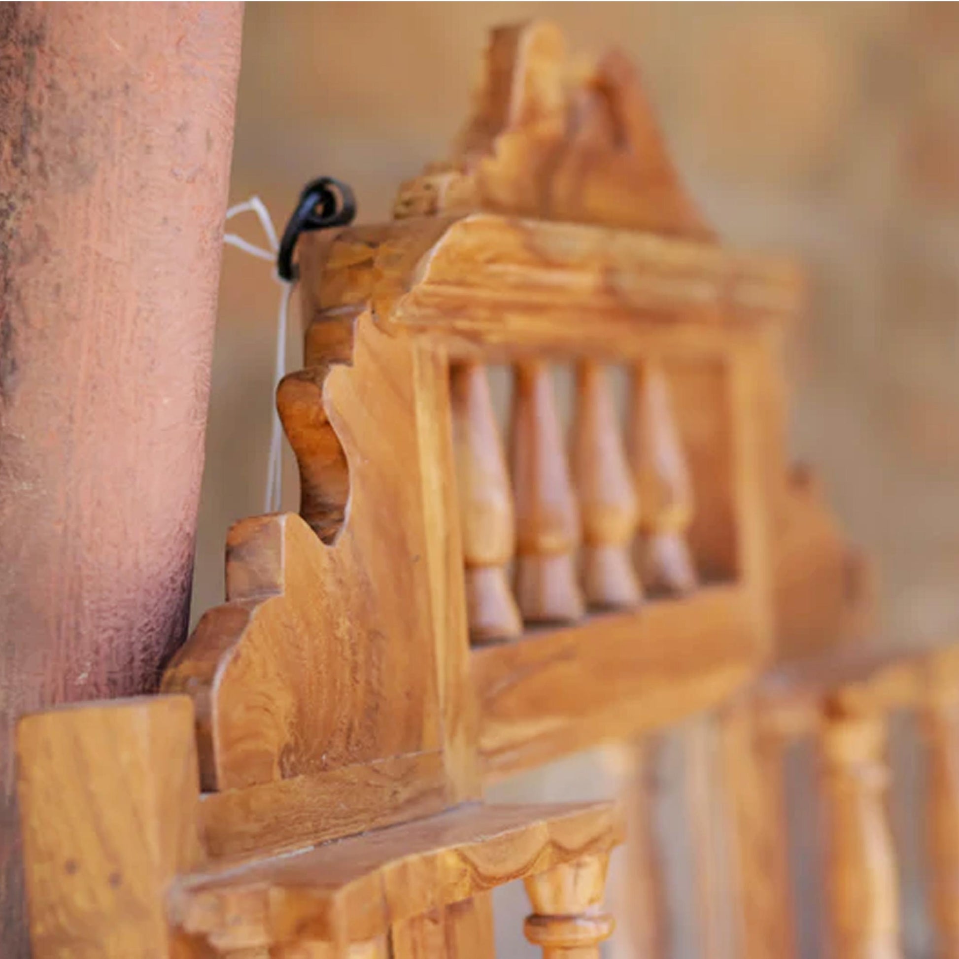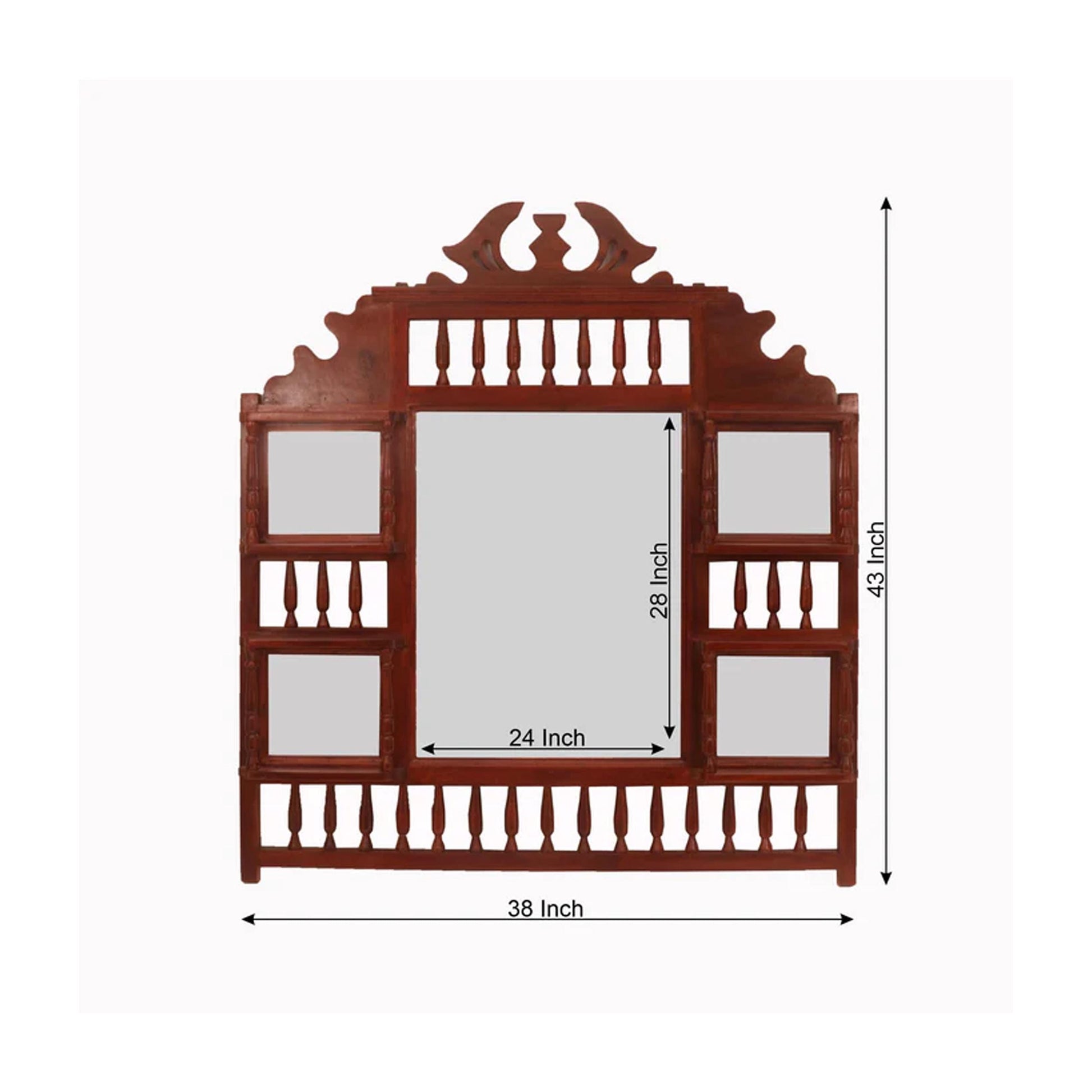 Mid Century Wooden Wall Mirror: Handmade Carved Wood Frame