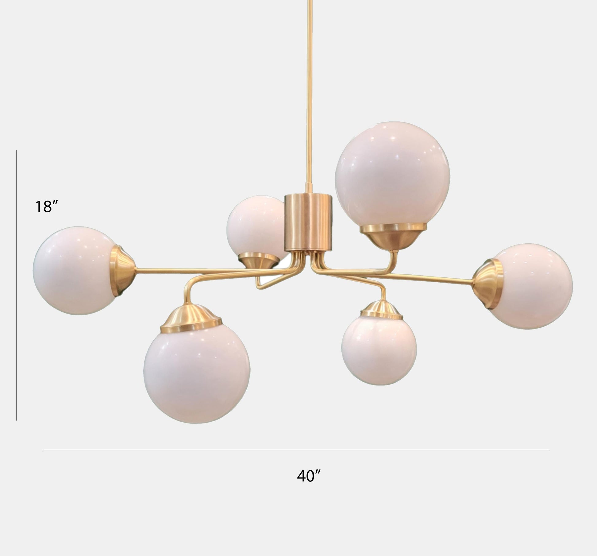 Opal Globe Sputnik Chandelier: Raw Brass Mid Century Modern Light