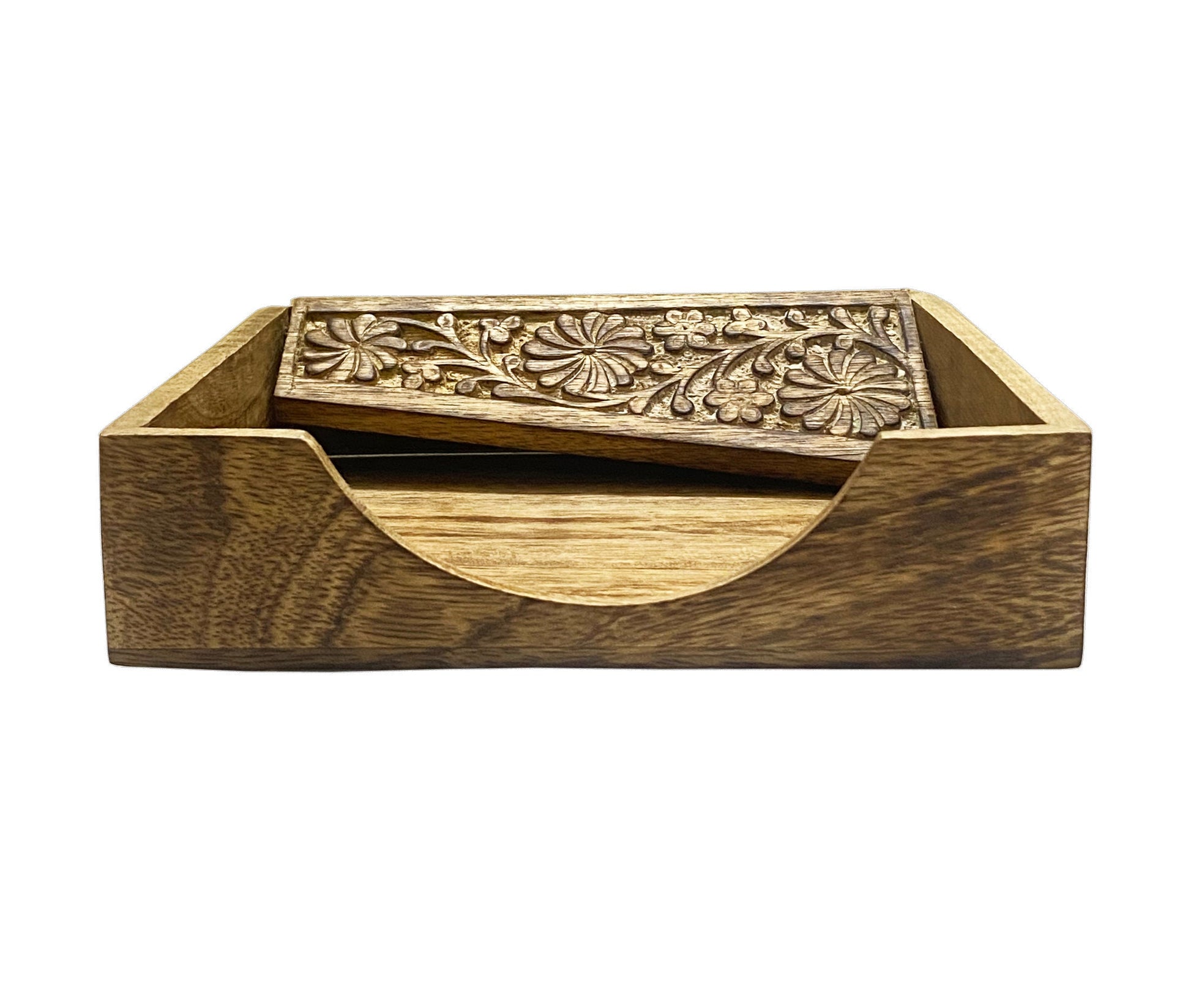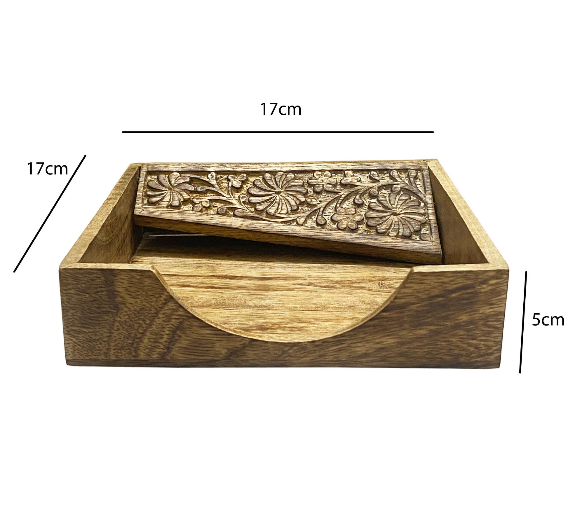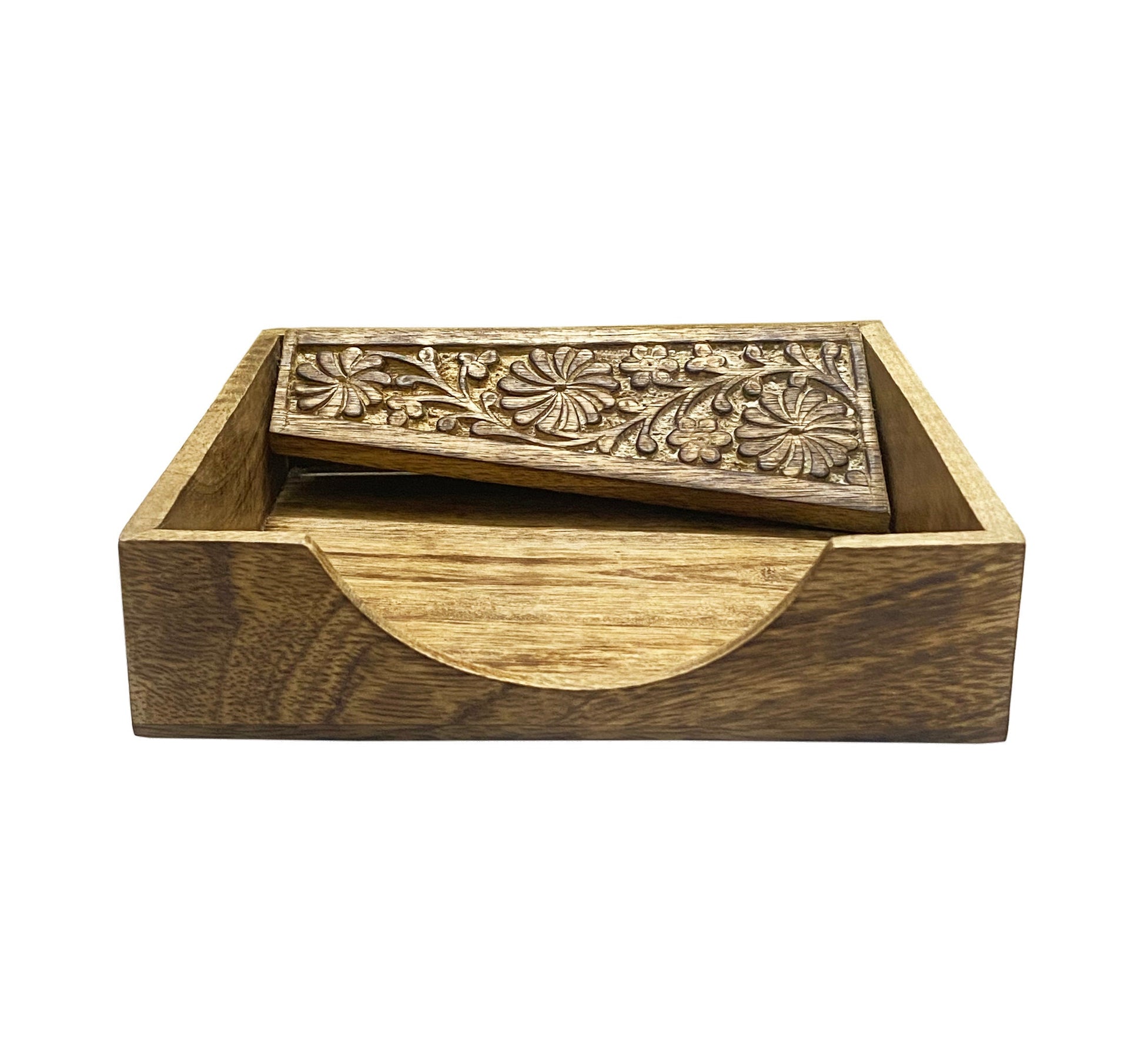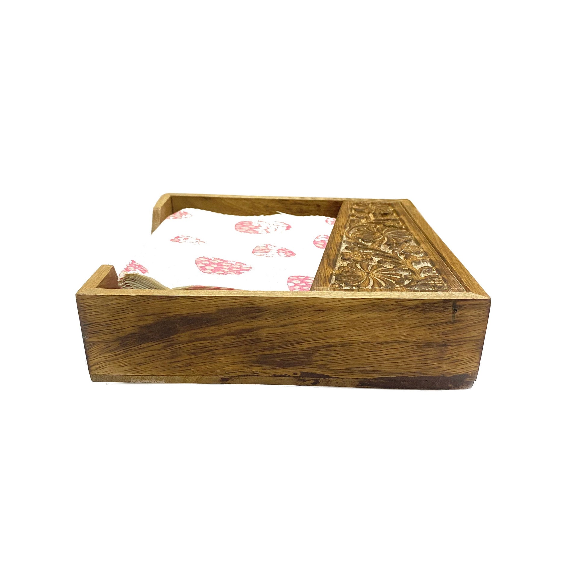 wood carved Tray for napkins, handmade Wooden Napkin holder coffee table décor